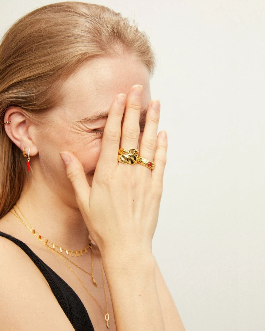 Glow in gold with our playful take on minimalism. Dainty details to make your jewelry speak for itself, so you can add a touch of fun to your look. All 18k gold plated.