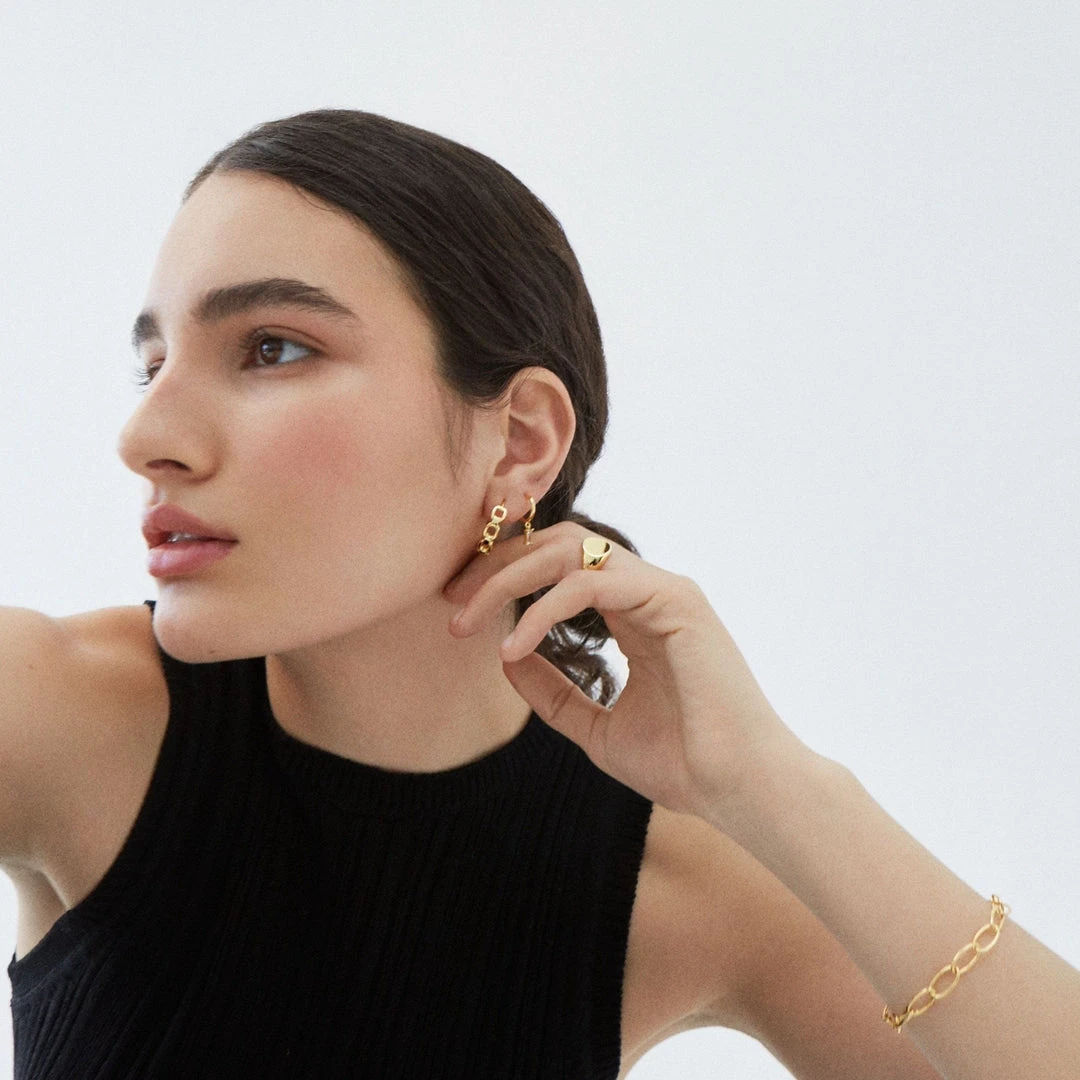 Glow in gold with our playful take on minimalism. Dainty details to make your jewelry speak for itself, so you can add a touch of fun to your look. All 18k gold plated.