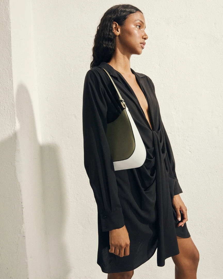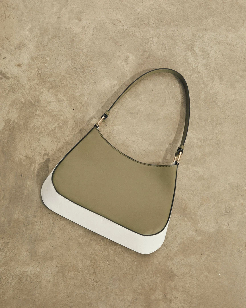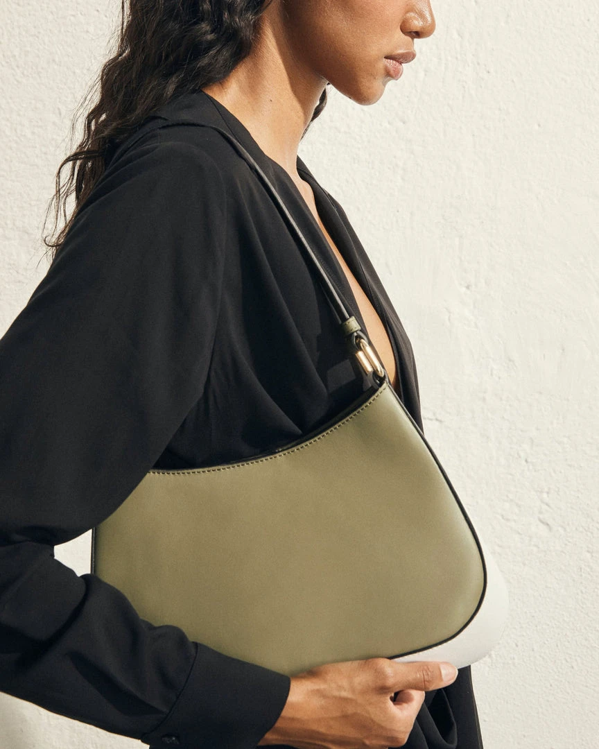 Cut out of cow leather, this sophisticated rounded shape on the sides shoulder-bag is THE piece all of us should add to our wardrobe this season.