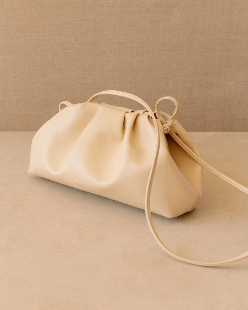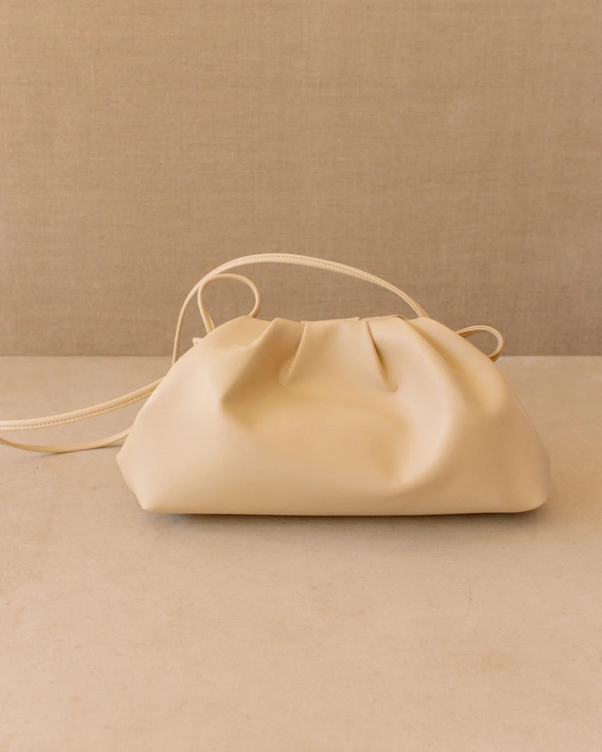 Leather pouch crafted from corn leather. Carry yours in-hand. Removable leather strap.