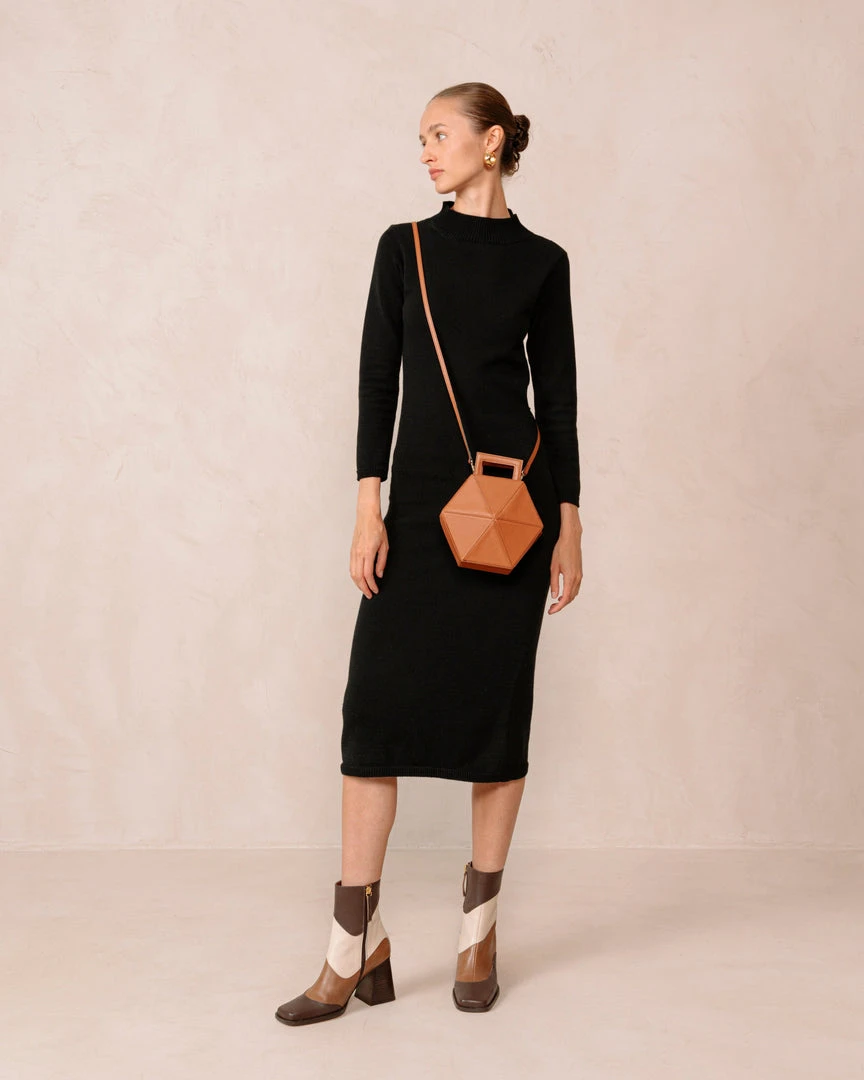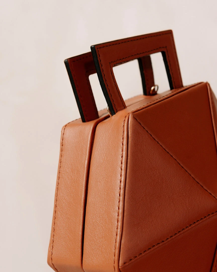 Hexagon-shaped handbag with strap and handle. The perfect size for those who value comfort as much as style.