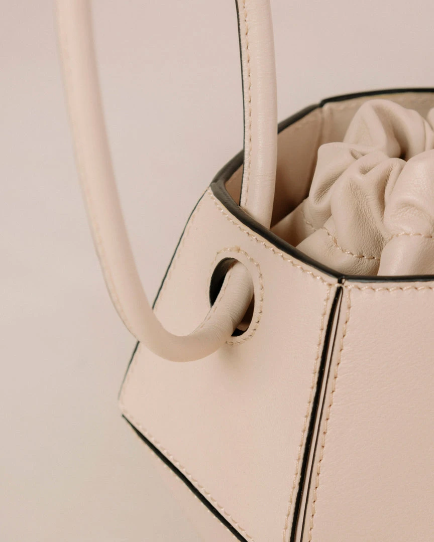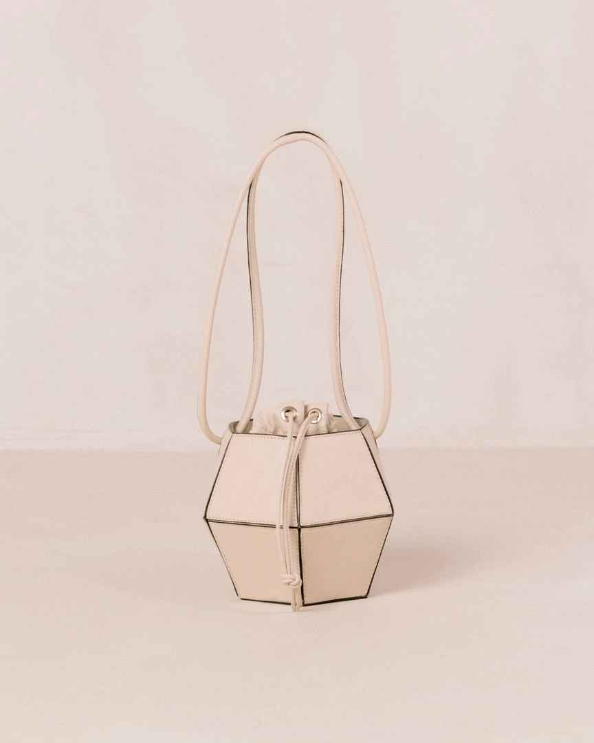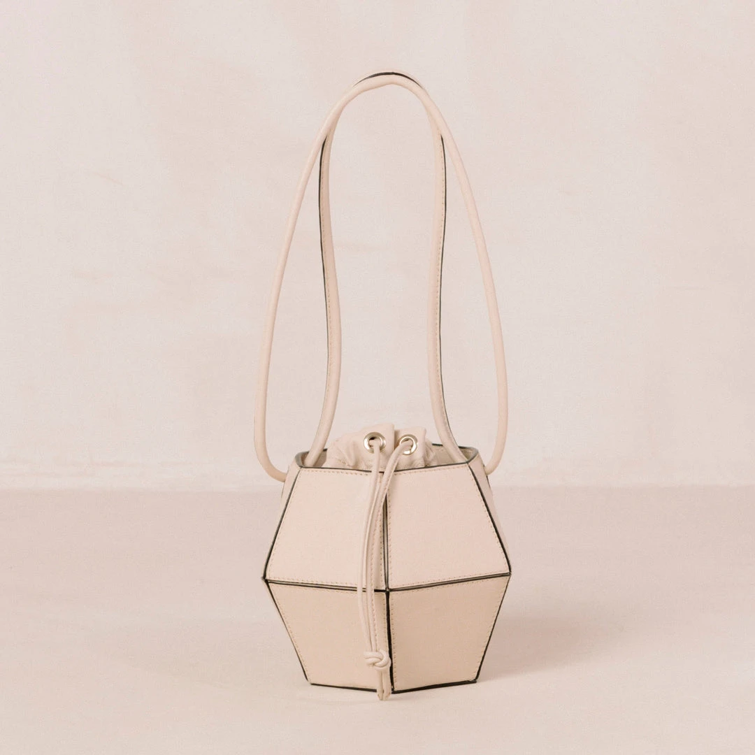 Hexagonal prism-shaped handbag with a long strap. The perfect size for those who value comfort as much as style.