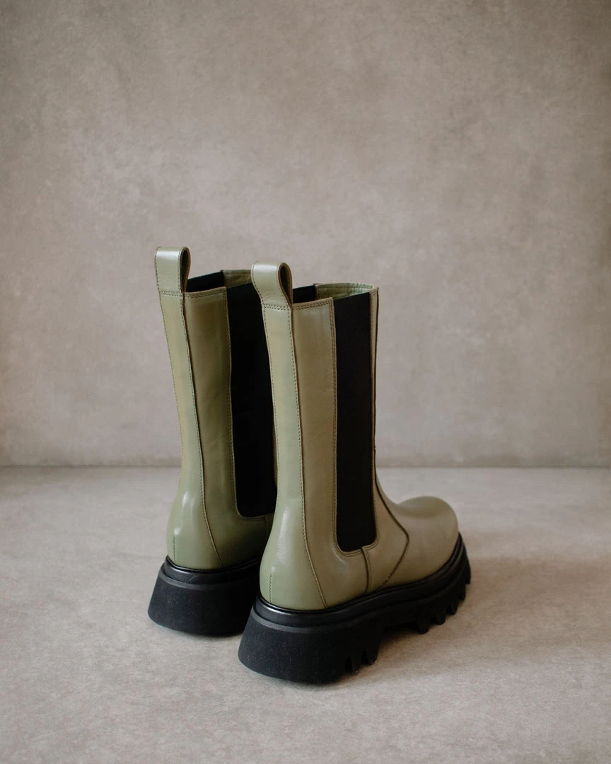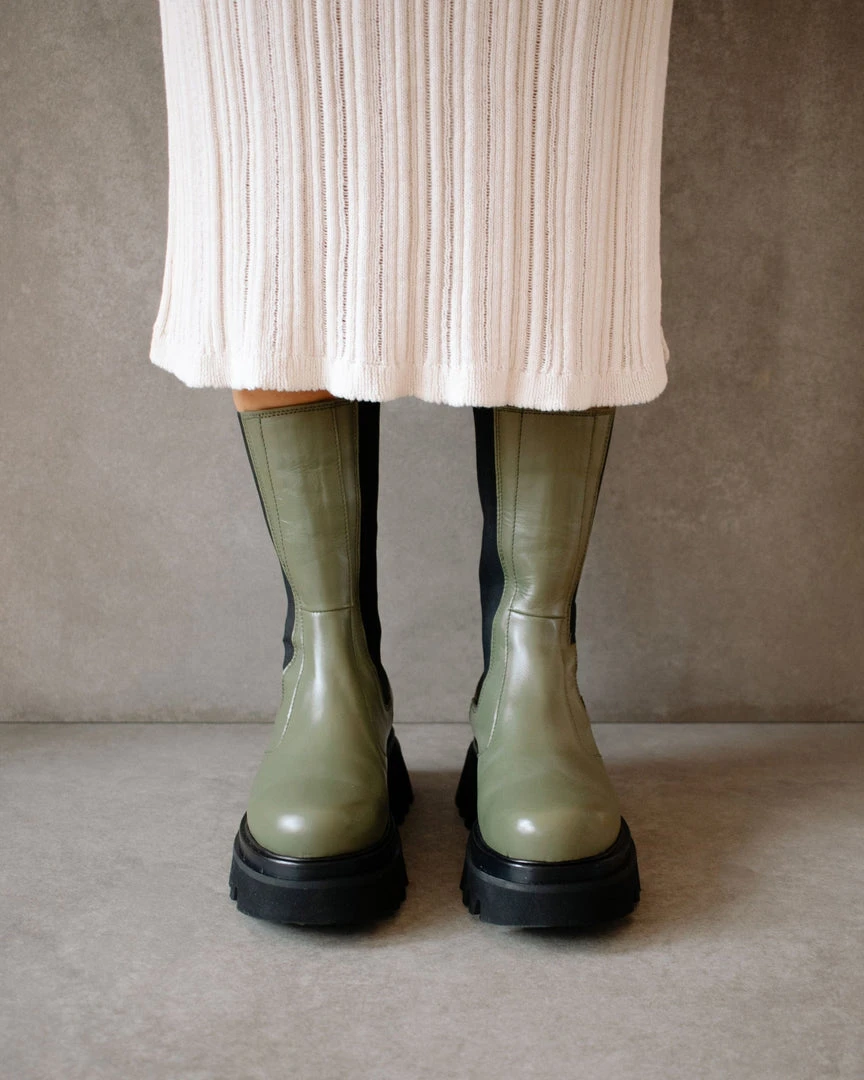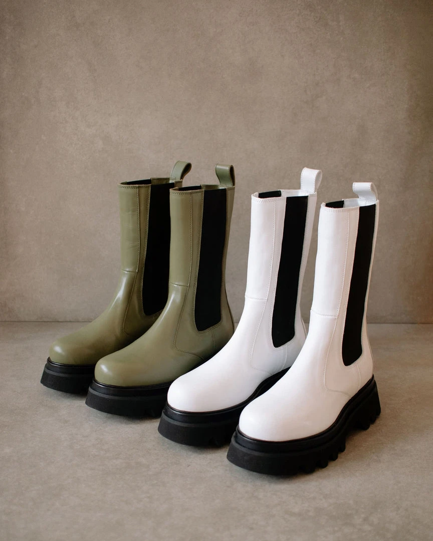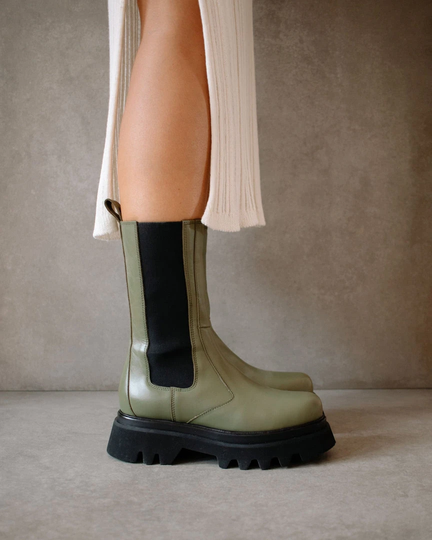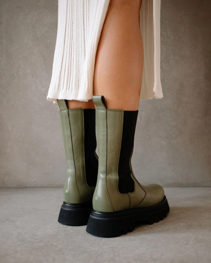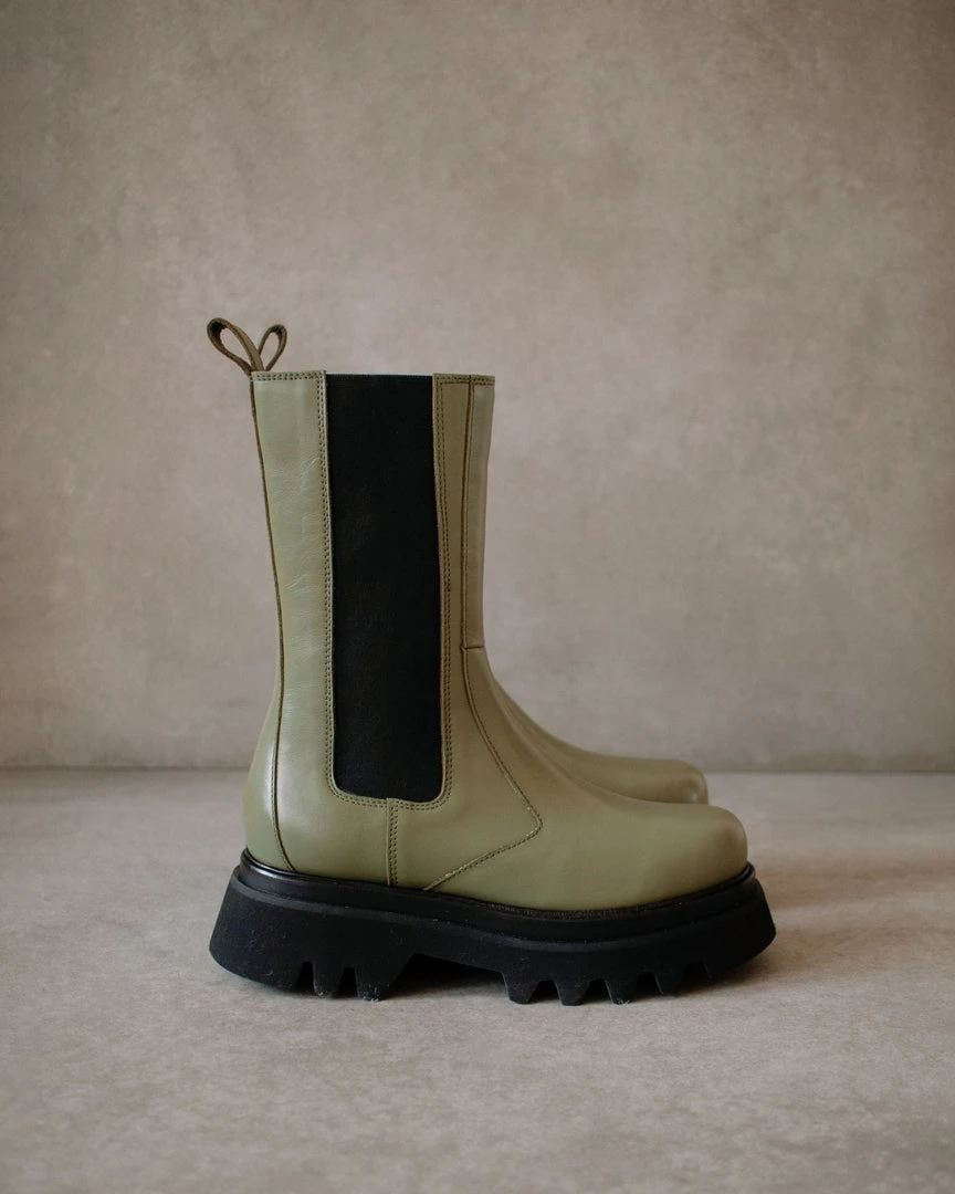 Chunky style boot with a maxi platform and slip on silhouette. Reaches right above the ankle. Adds height and attitude to any type of outfit.