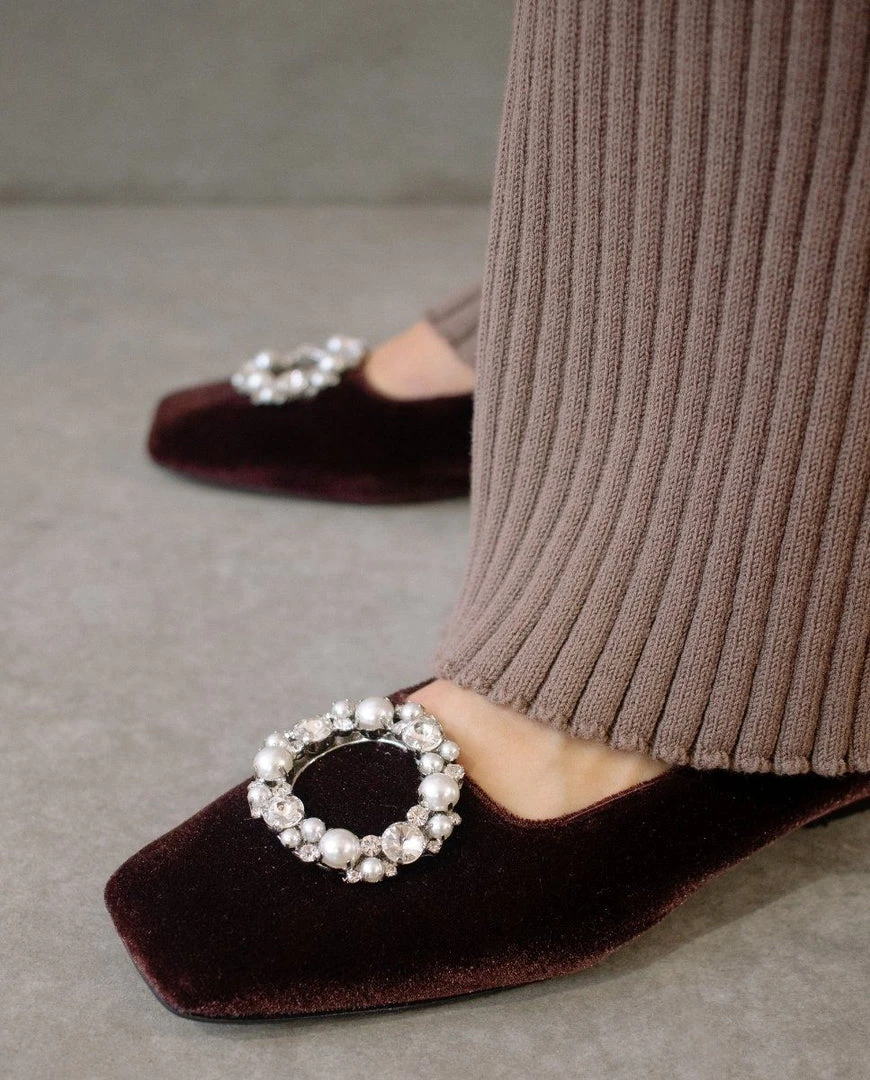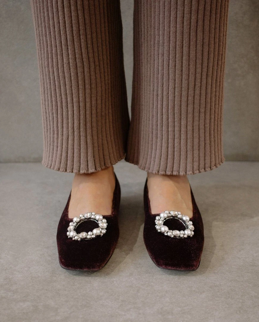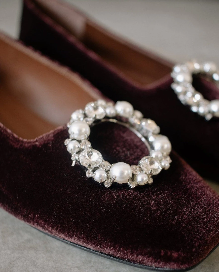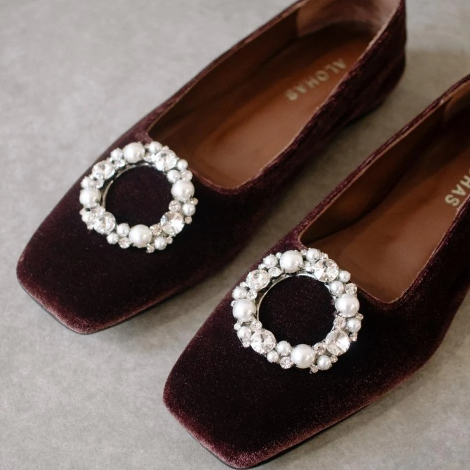 Bella Crystal Velvet is always the belle of the ball. A timeless ballerina with a diamond & pearl front and a vintage, velvet-soaked Roaring 20’s dinner party look. Best to wear with the Conquest dress & a fancy crown.