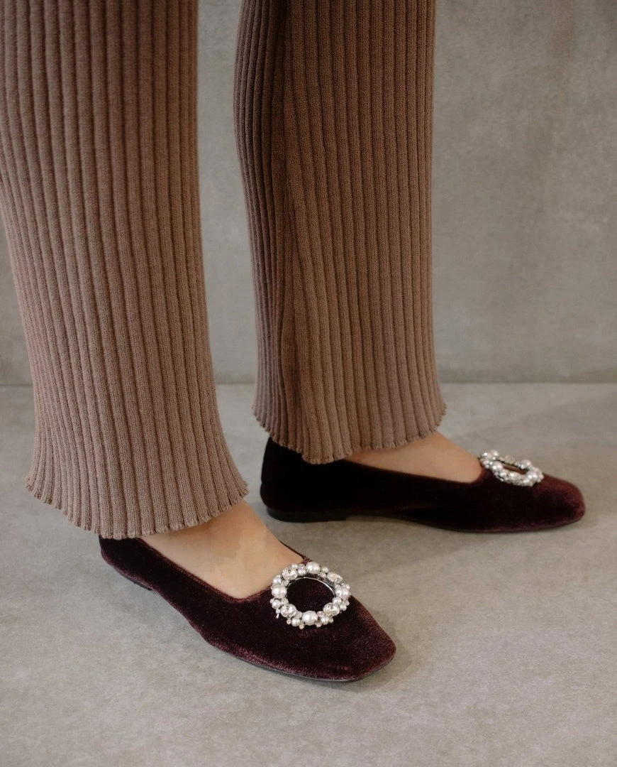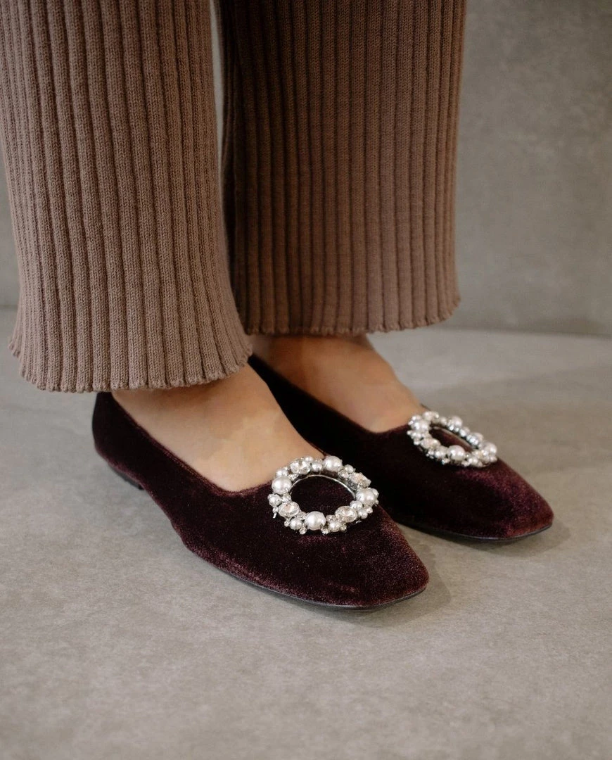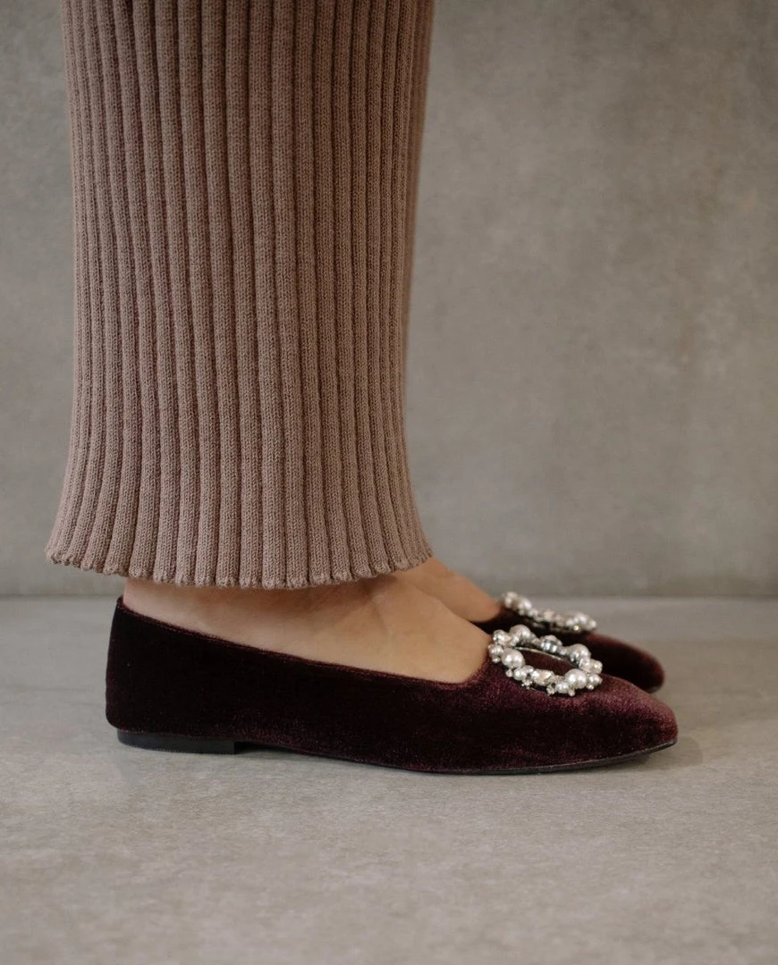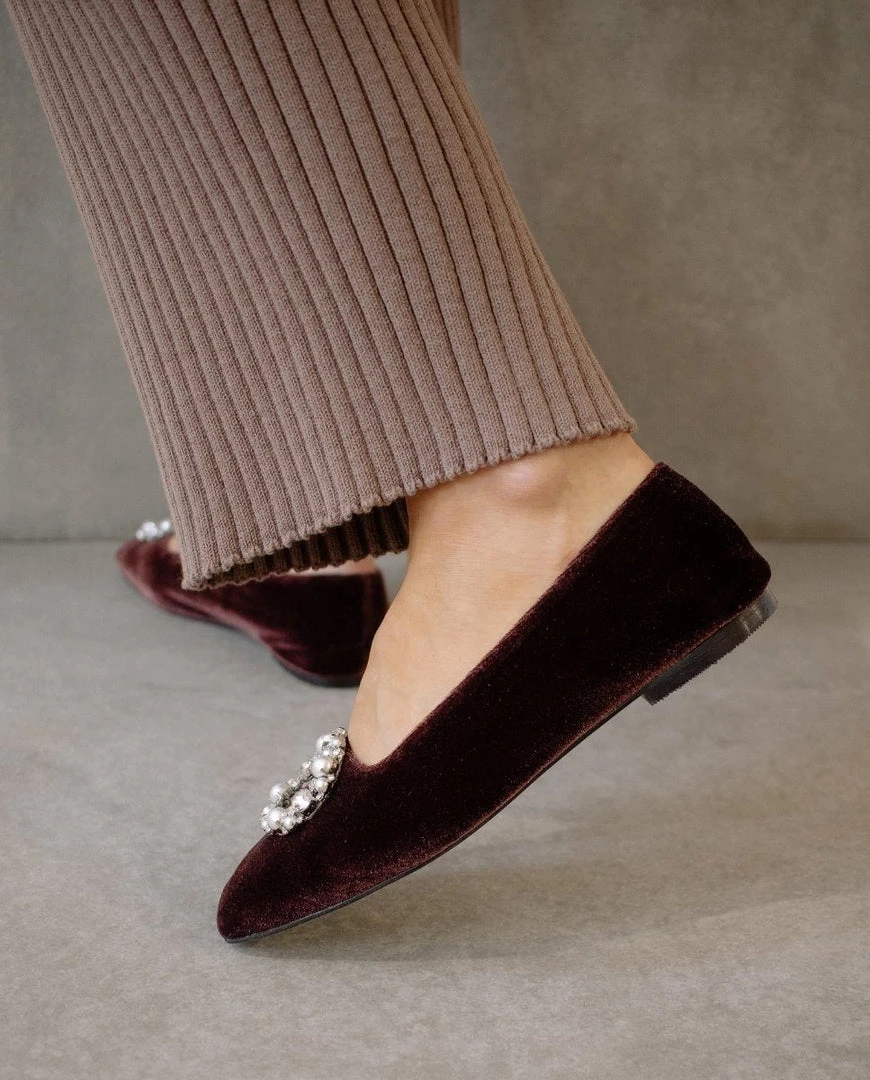 Bella Crystal Velvet is always the belle of the ball. A timeless ballerina with a diamond & pearl front and a vintage, velvet-soaked Roaring 20’s dinner party look. Best to wear with the Conquest dress & a fancy crown.