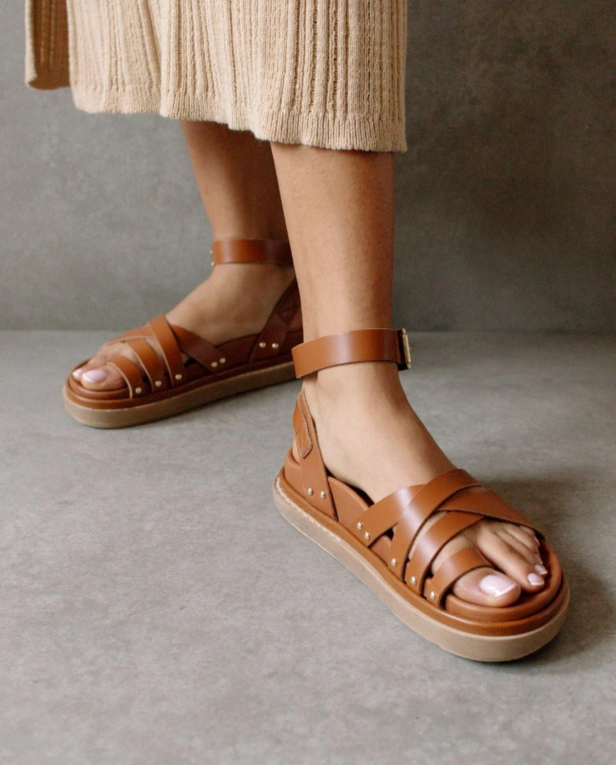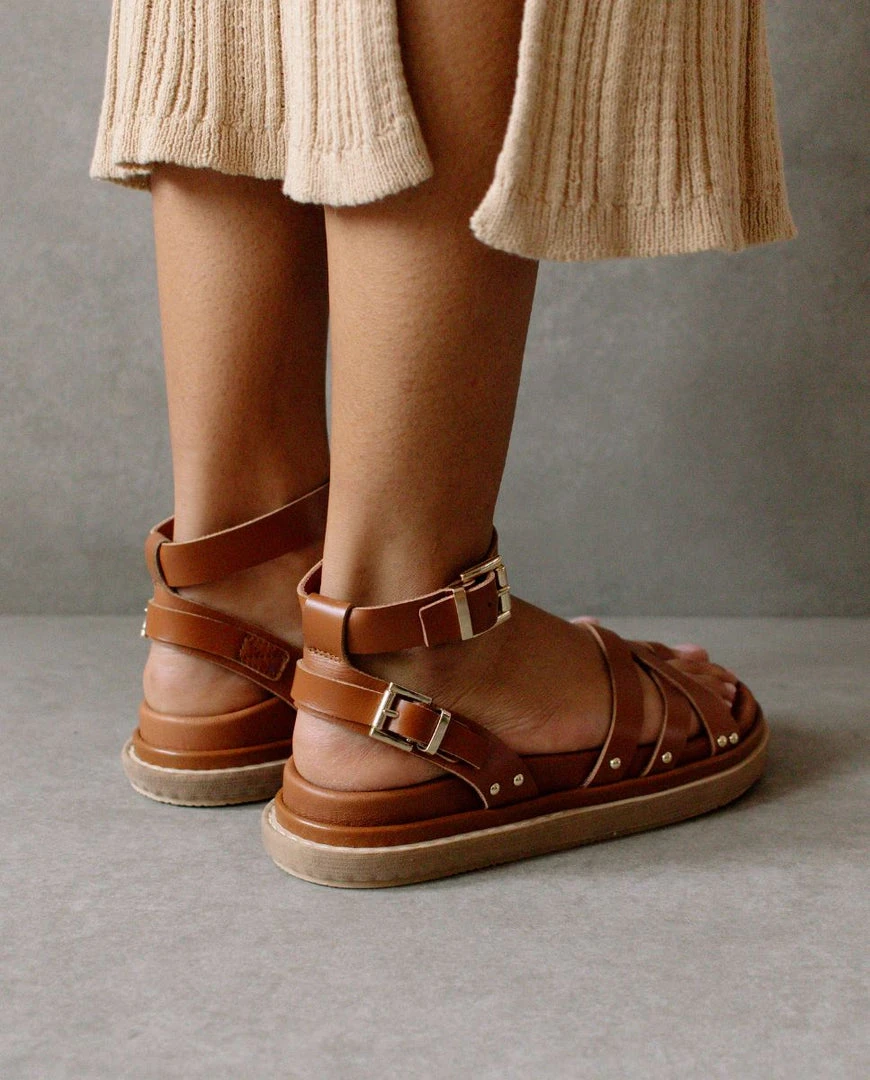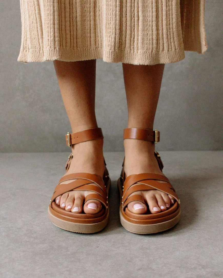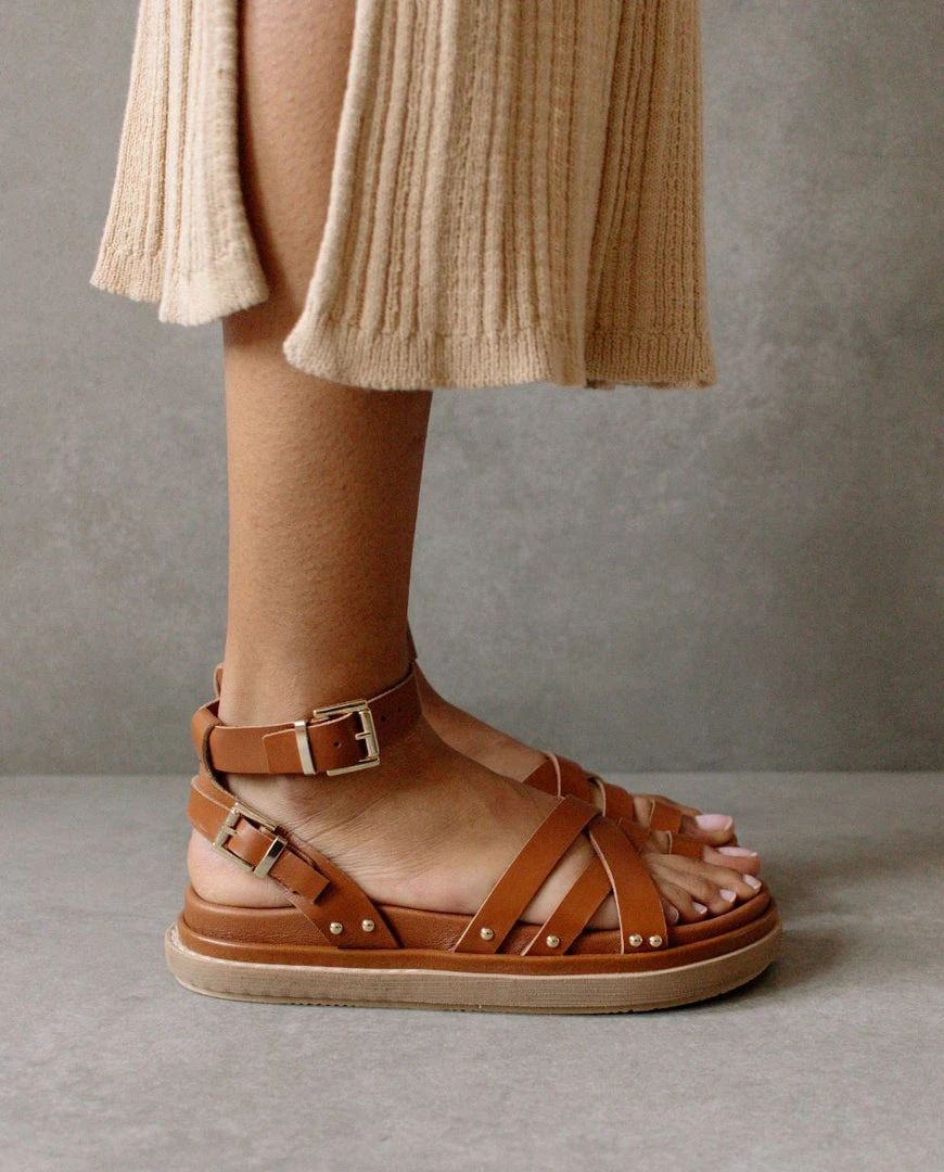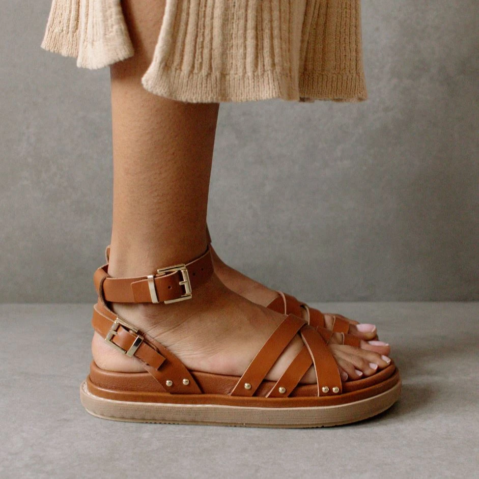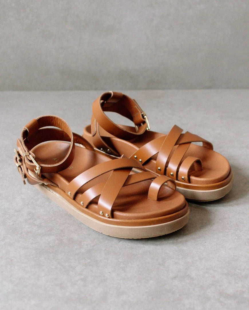 Anatomical sole silhouette featuring a strong buckle hold around the ankle. Double straps criss crossed up front and a toe ring told.