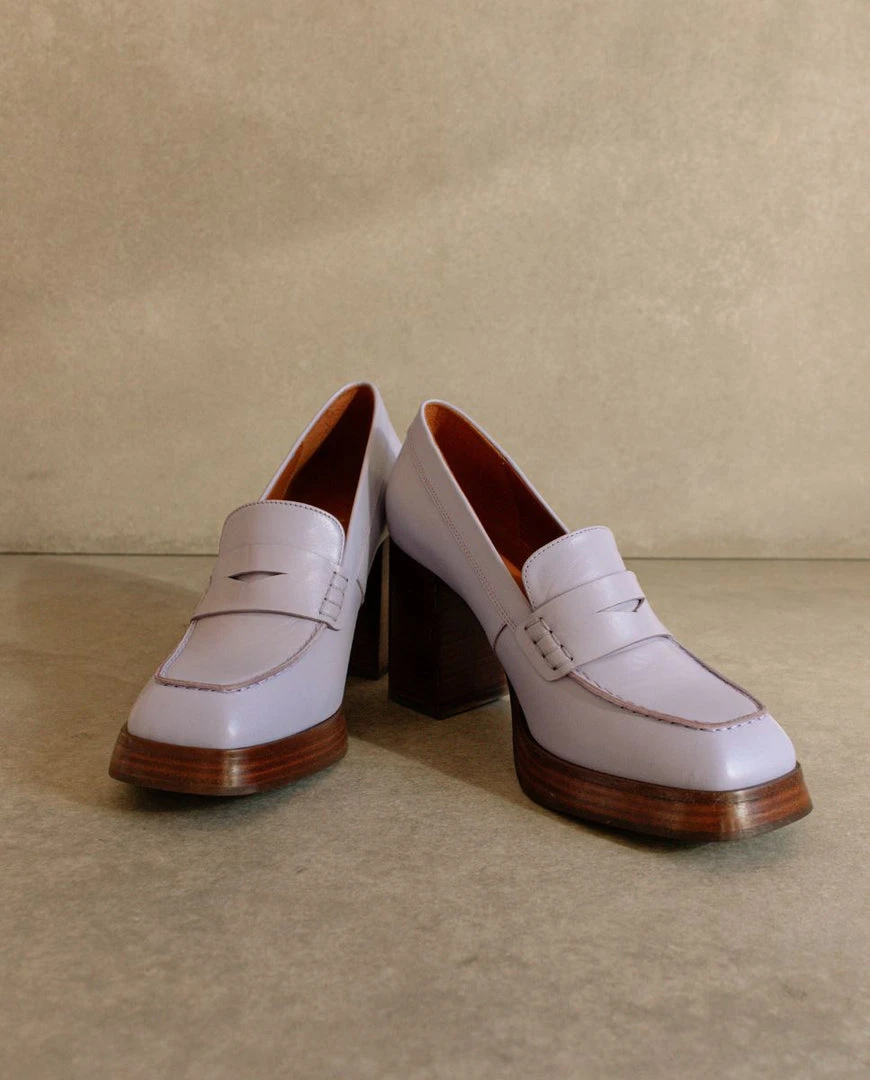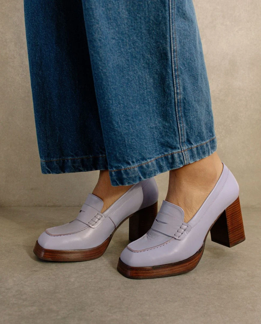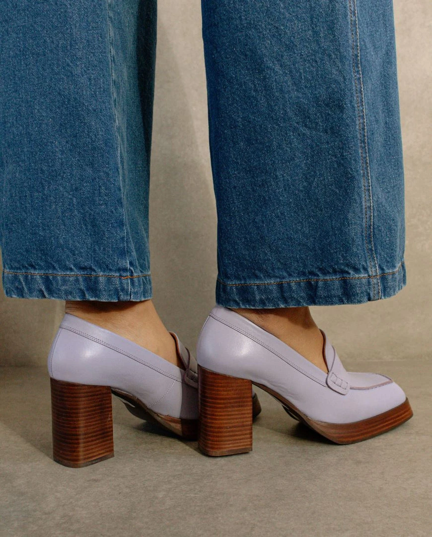 Purple high heel loafer pumps