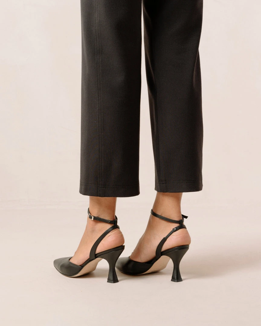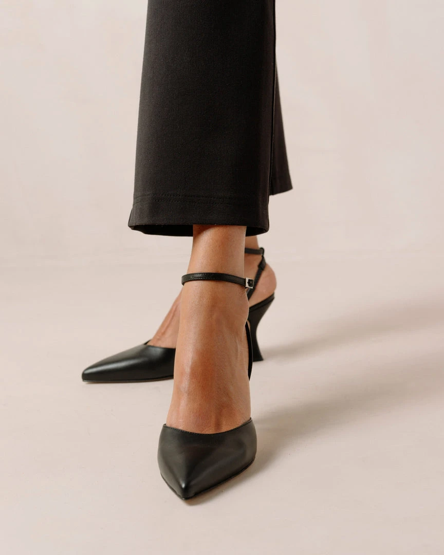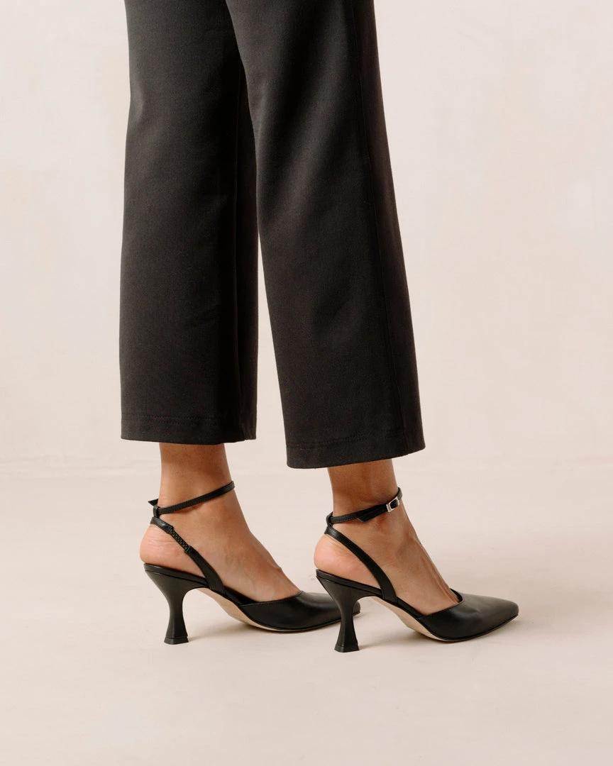 Sophisticated heel with a pointed toe and a whole lot of personality. Adjustable ankle strap for maximum comfort.