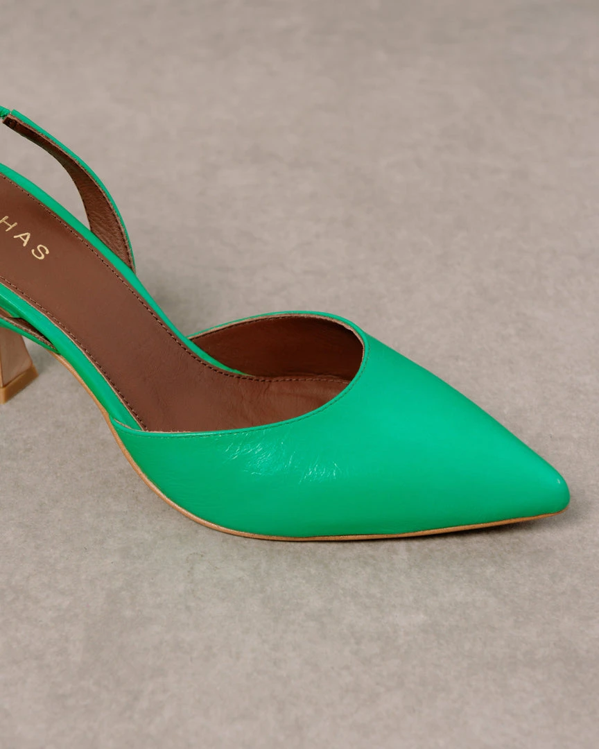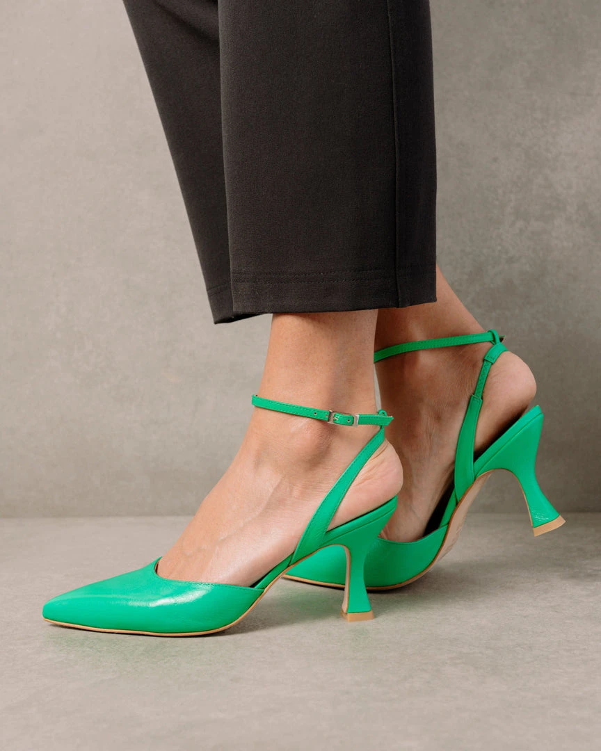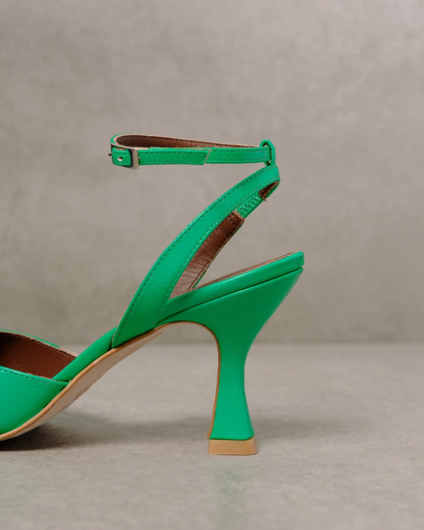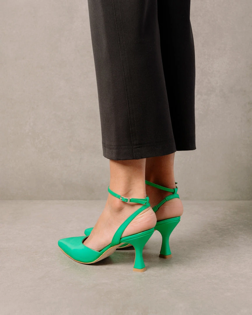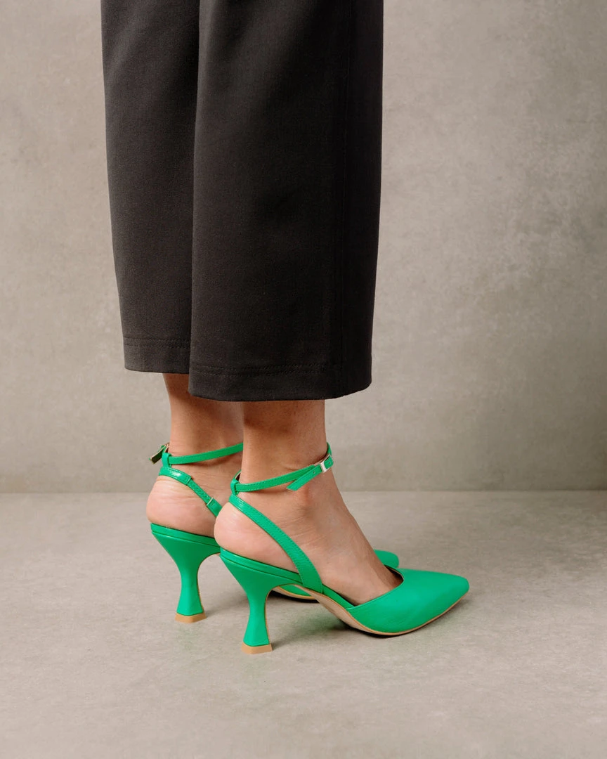 Sophisticated heel with a pointed toe and a whole lot of personality. Adjustable ankle strap for maximum comfort.