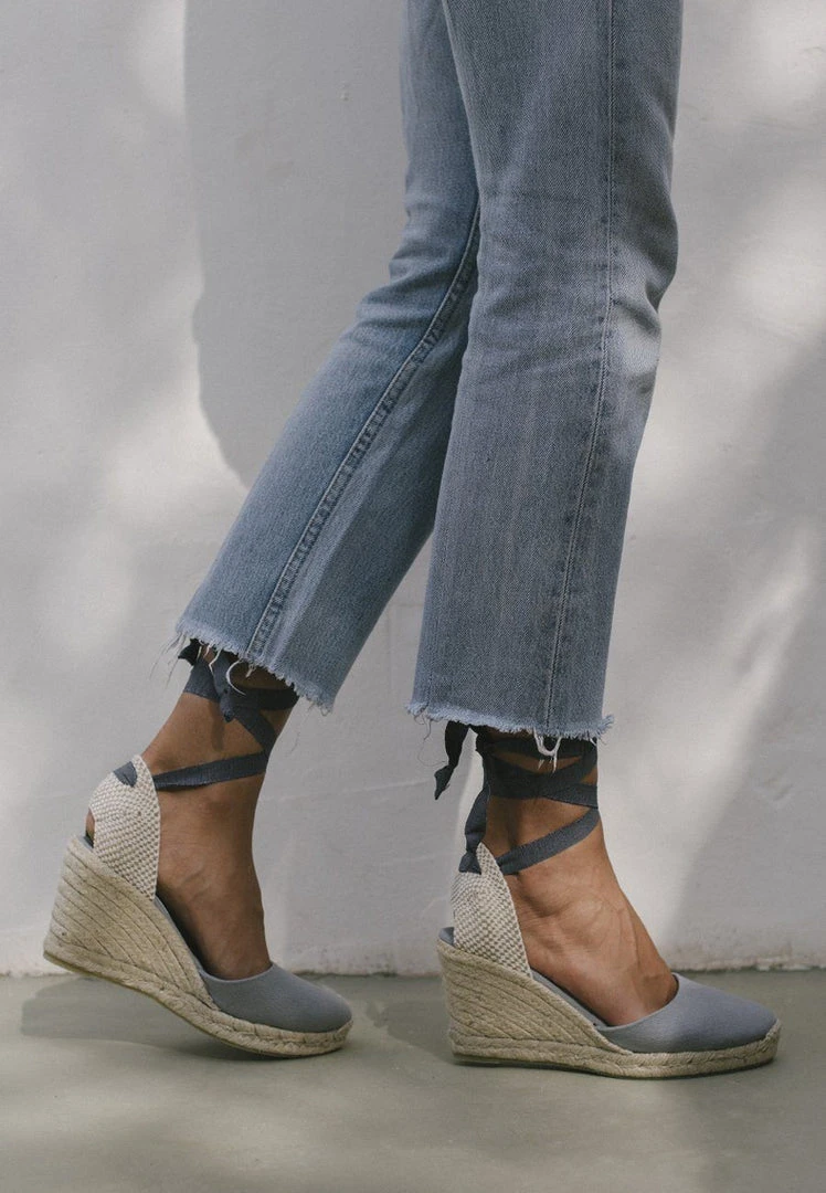 The Clara by Day Grey is one of our signature espadrilles. Flattering silhouette perfect to add that extra height to longer hemlines and flowy dresses.