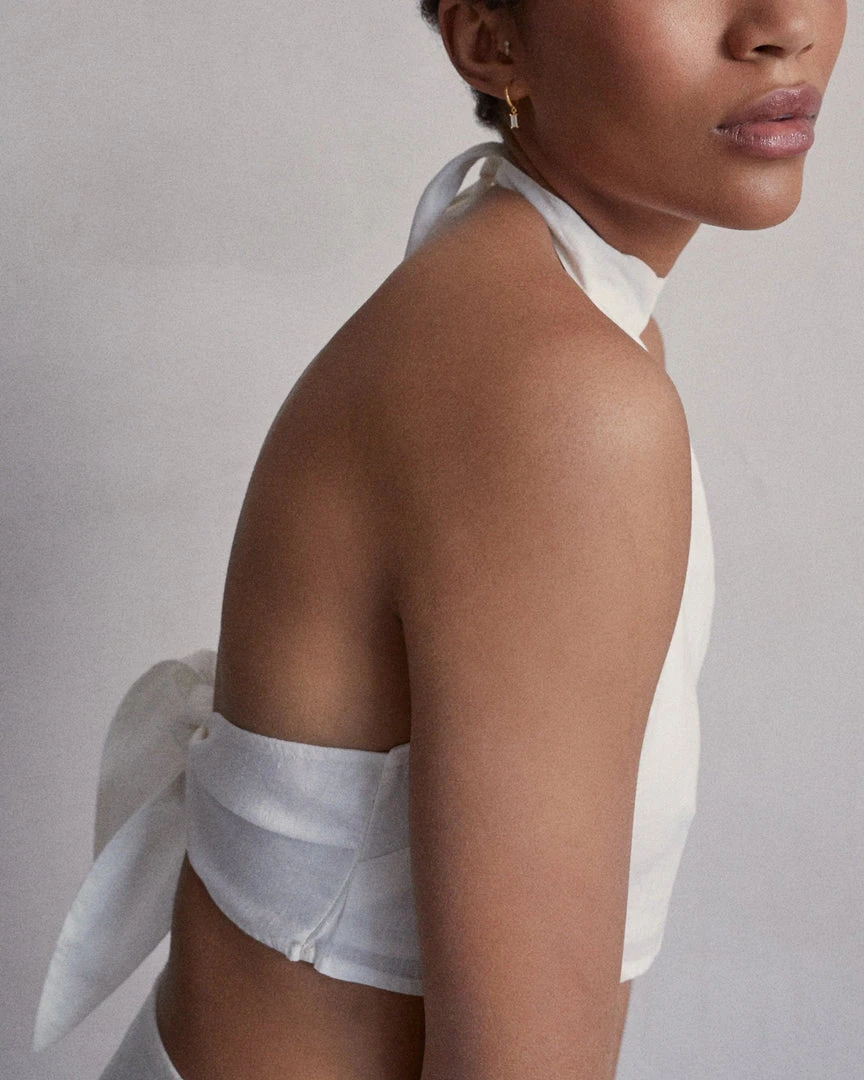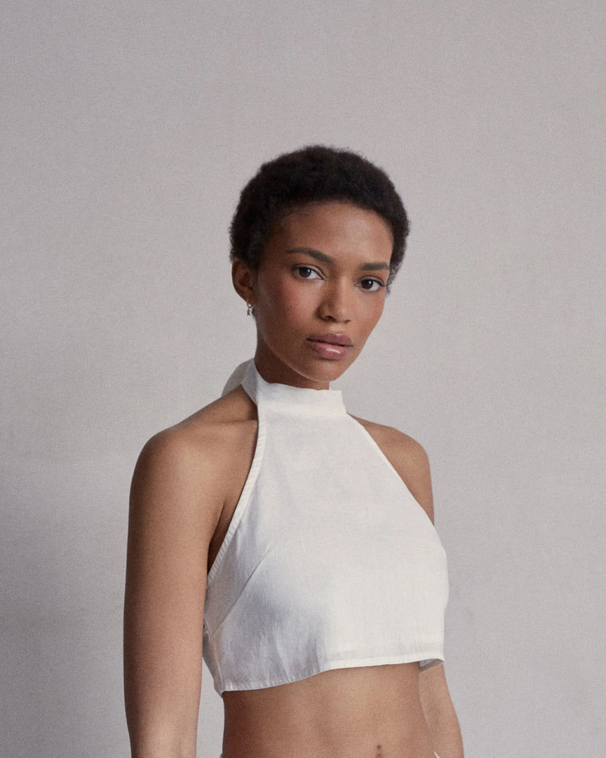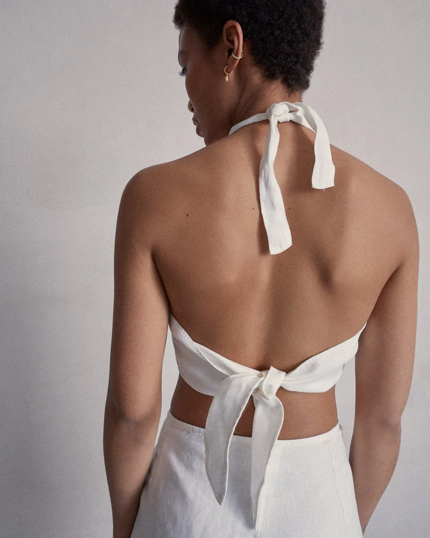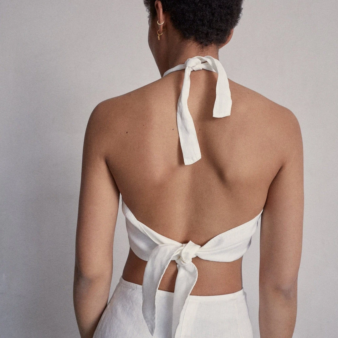 White linen crop top