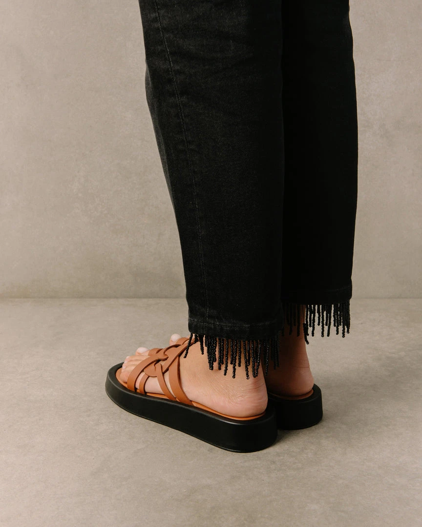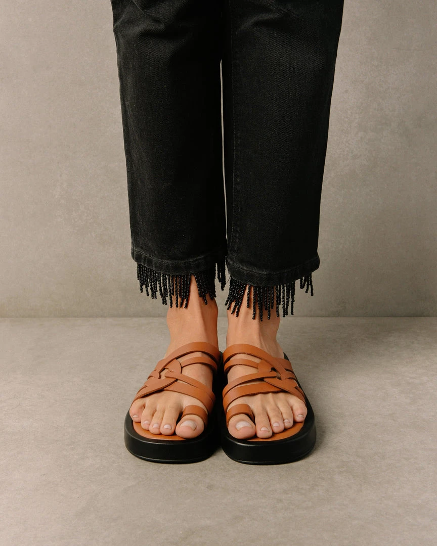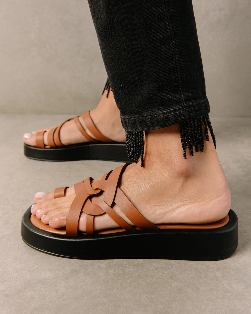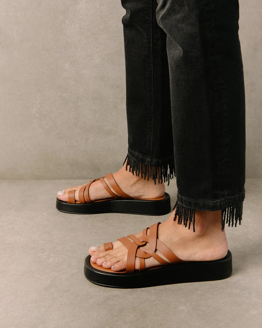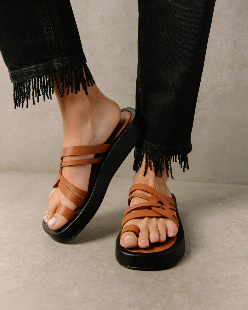 You didn’t see Cool coming. Chunky flop style sandal with toe ring and luxurious leather criss crossed straps for support.