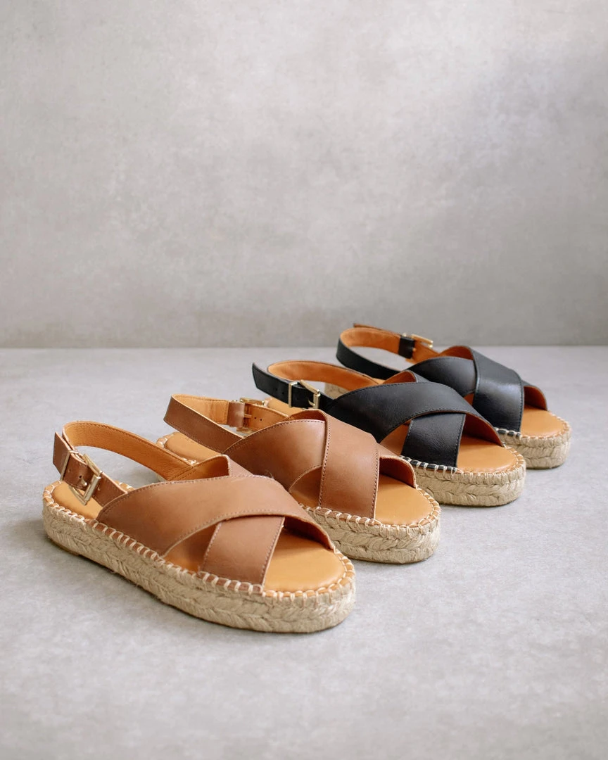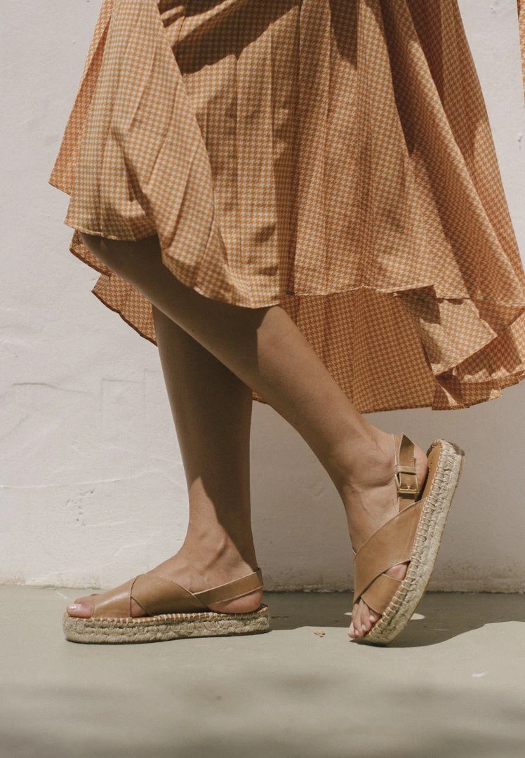Comfort and durability are the defining features of The Crossed Camel. These cross strap espadrille flats feature two wide front straps as well as an extra ankle strap for the perfect fit. Their open toe allows breathability and a chance to show off your summer nail polish. The espadrille platform soles not only offer support and a flattering figure but are also extremely comfortable to walk on – it’ll feel more like a glide through the clouds.