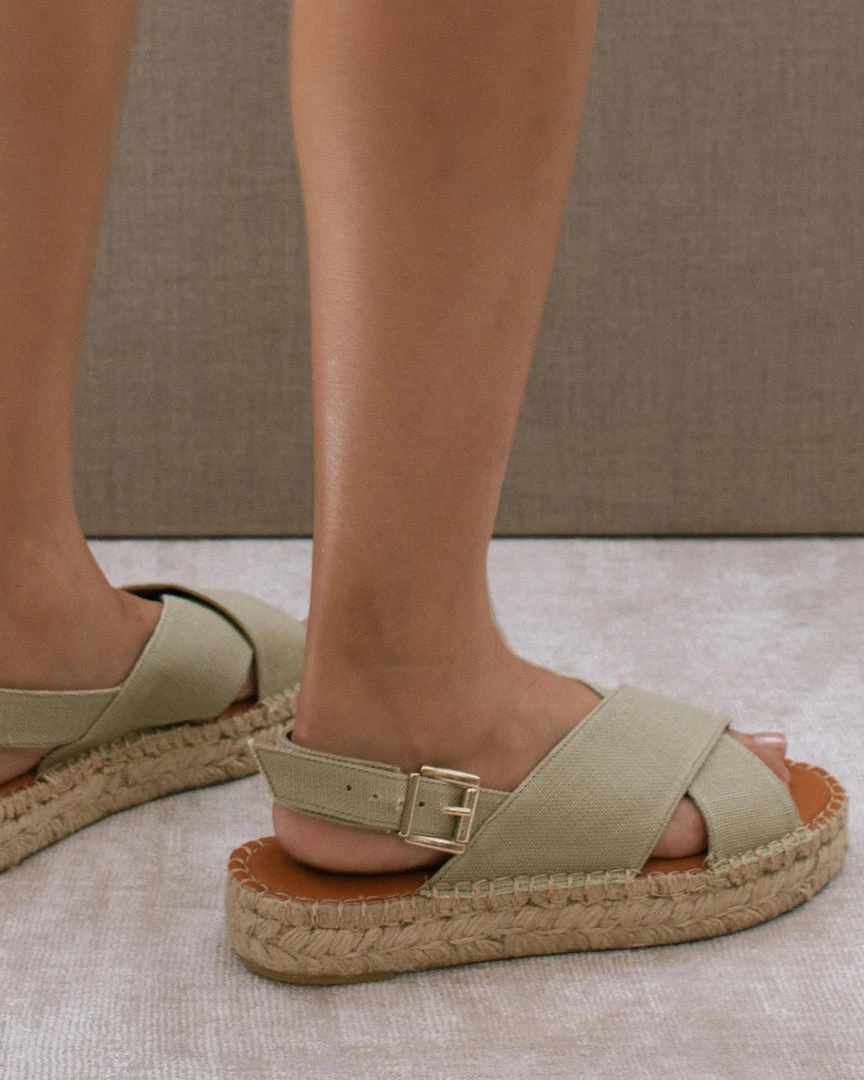 The quintessential open-toe espadrille made with 100% vegan materials. Add in a criss cross for a strong hold that merges subtle elegance with true comfort. Extra comfortable thanks to a buckled back strap and versatile design.