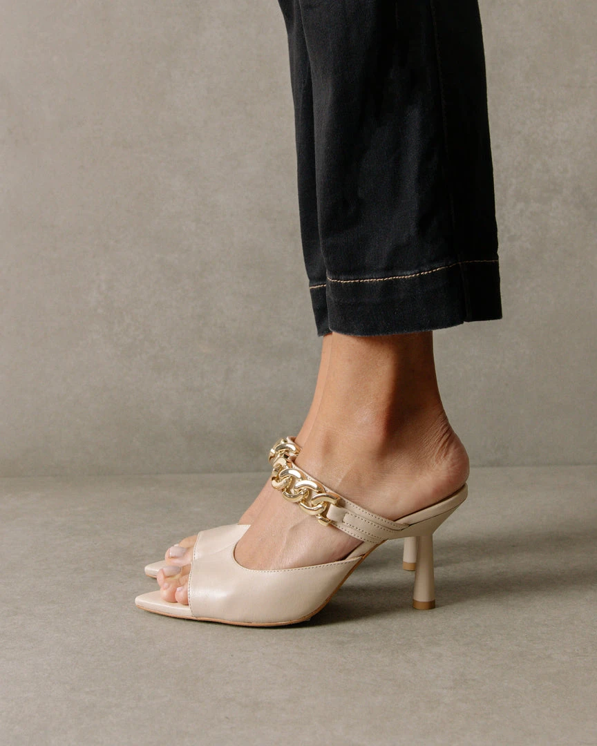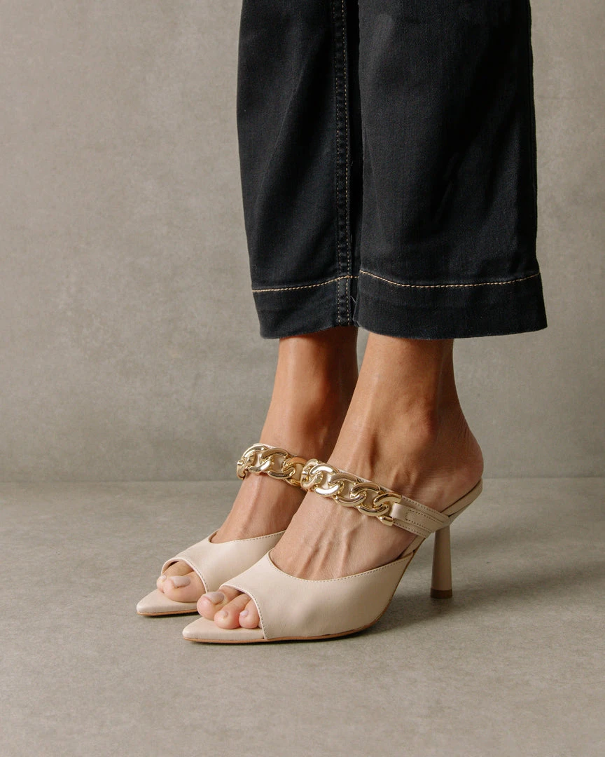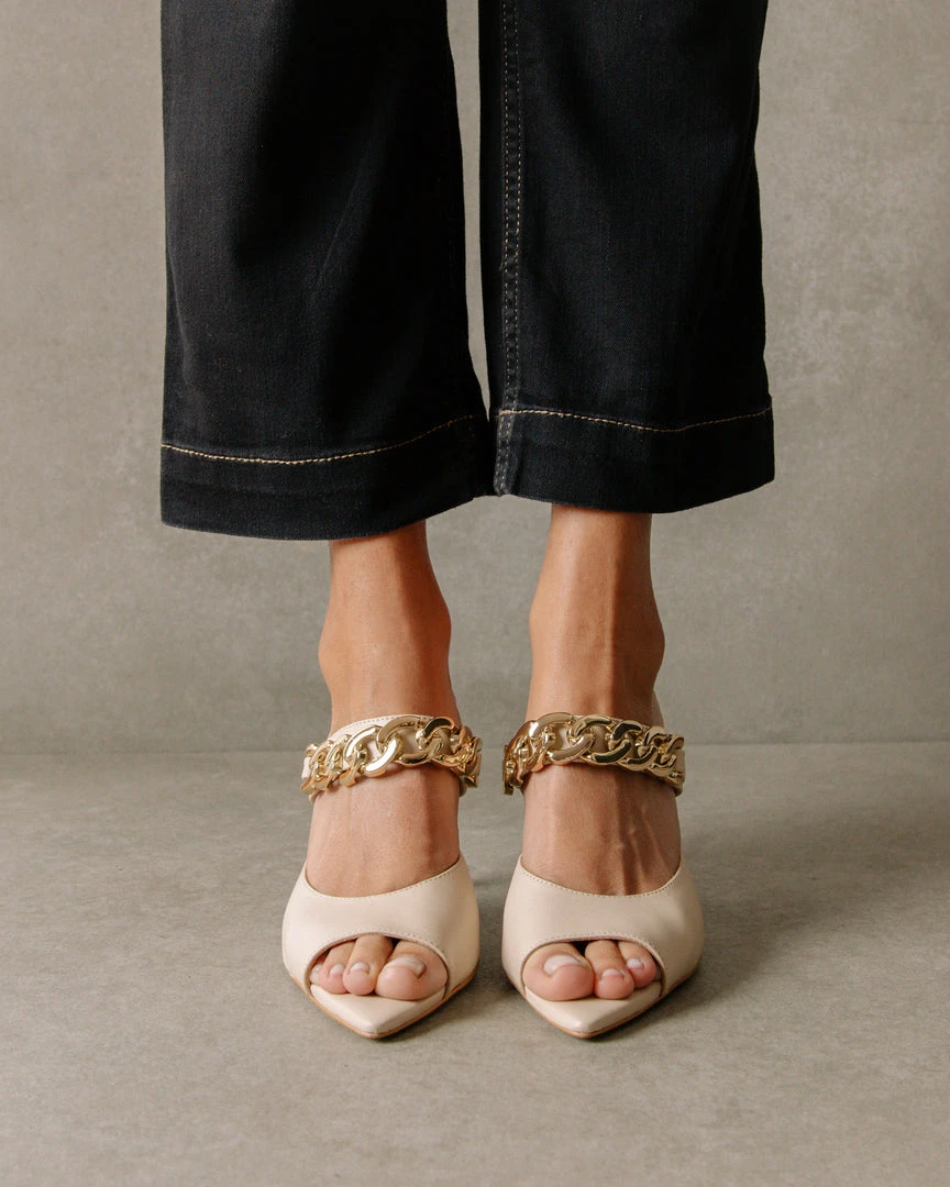 Putting a spin on the term “daisy chain”. Pointed open toes, a gold chain strap and all around glamour are what make Daisy your go-to choice.