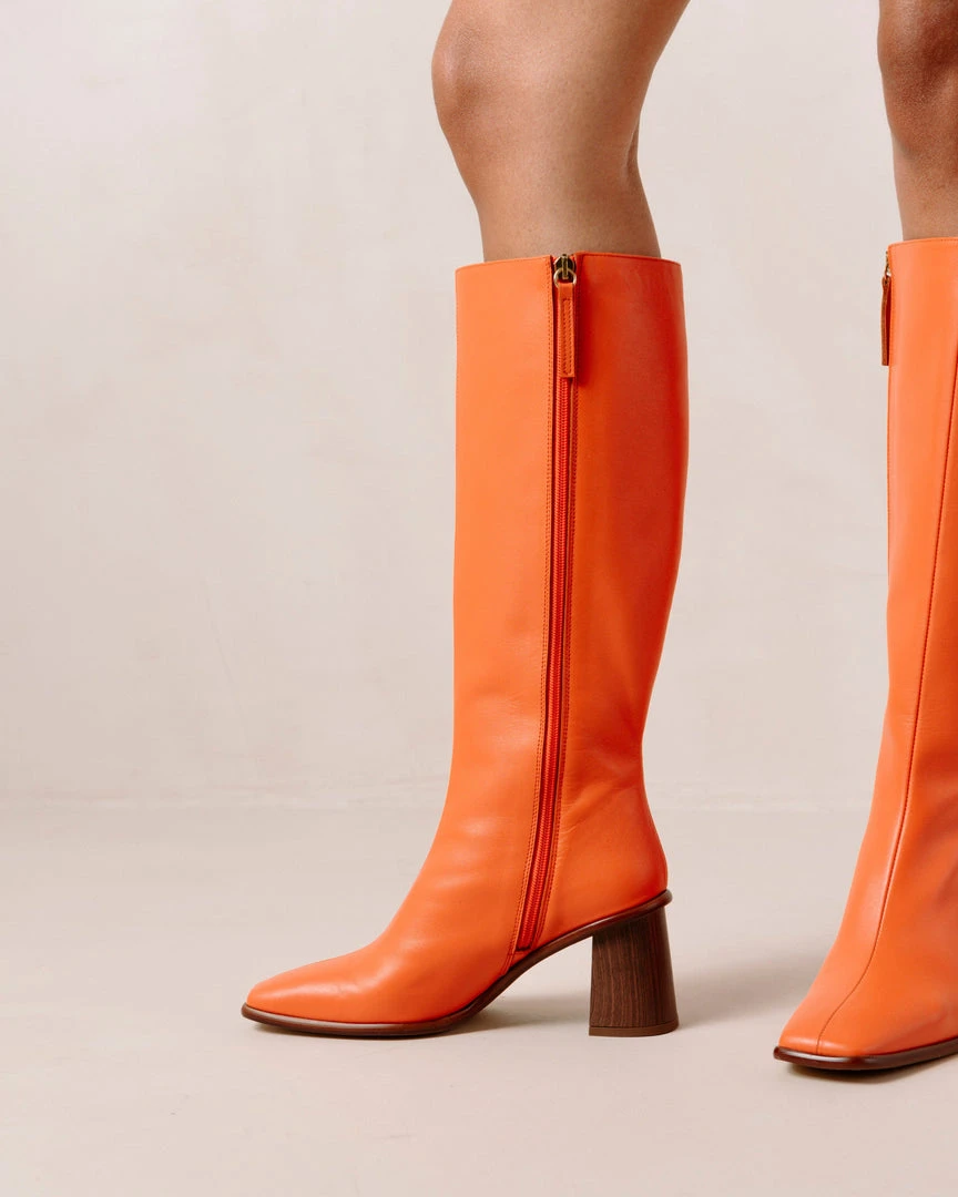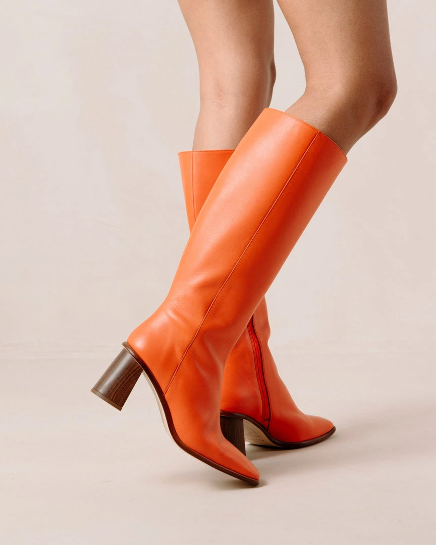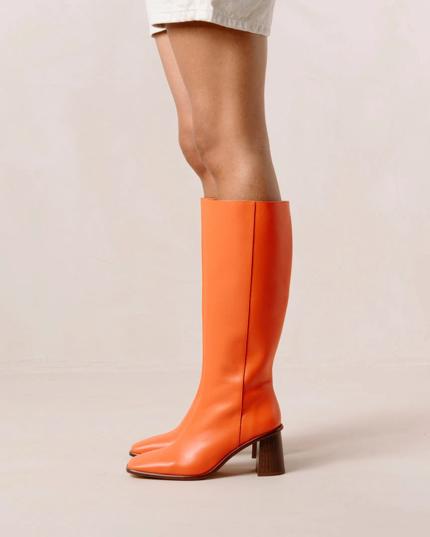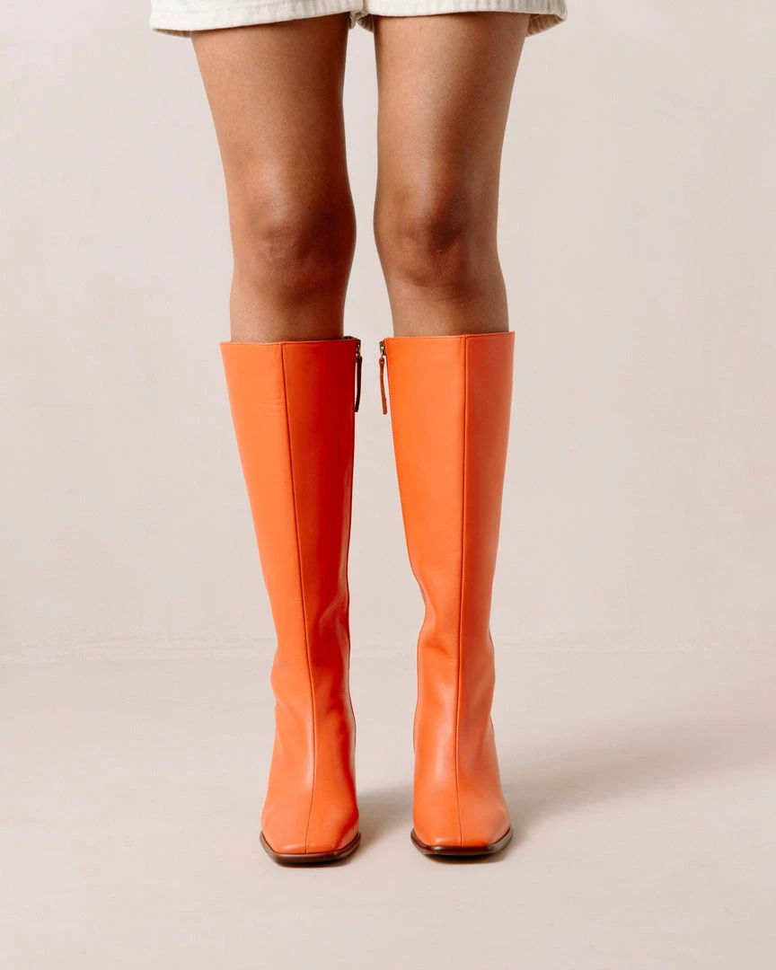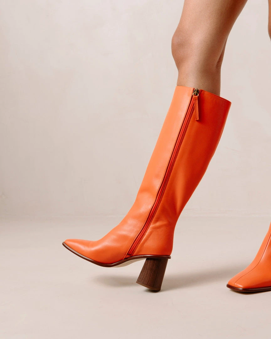 Bold and glamorous. A riding boot-inspired model made special with its square toe and block heel. Side zipper for added comfort and a slim fit.