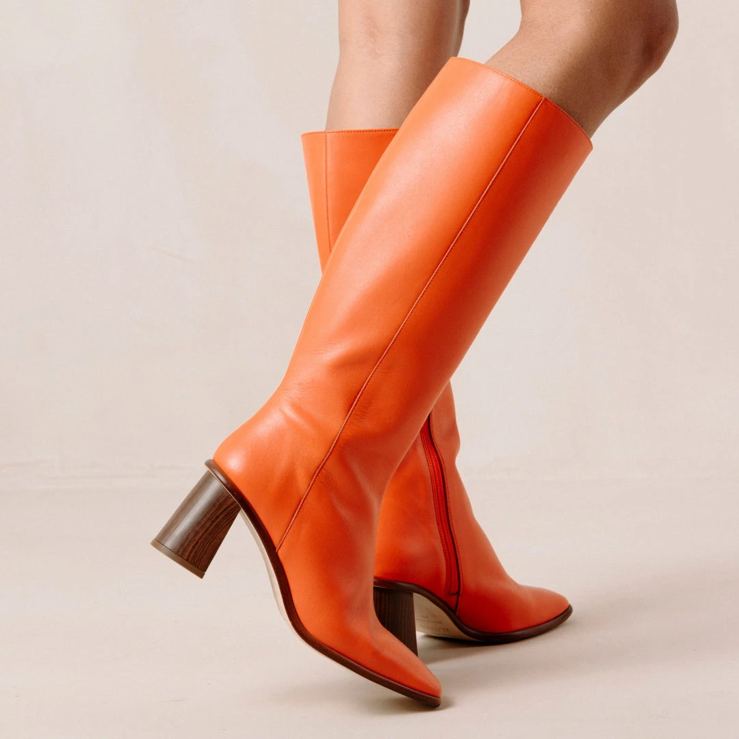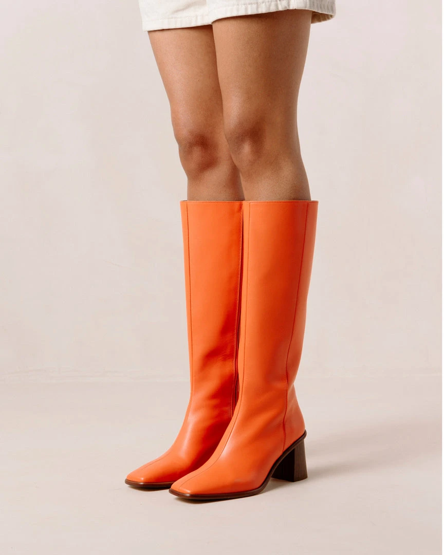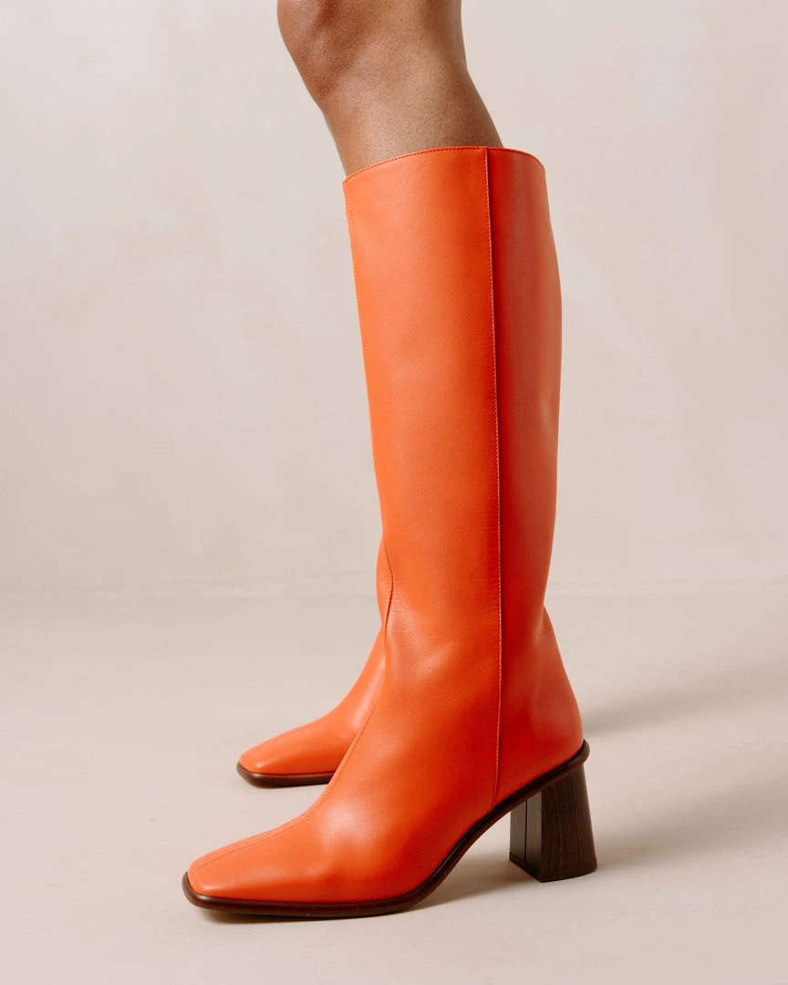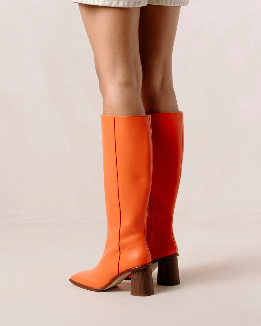 Bold and glamorous. A riding boot-inspired model made special with its square toe and block heel. Side zipper for added comfort and a slim fit.
