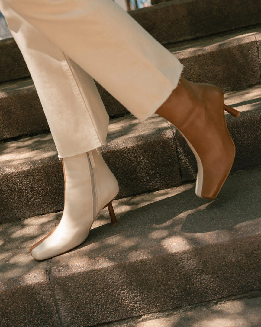 Slim ankle boot with a pointed heel and tons of glamour. Zips along the side to elongate your legs and create a flattering silhouette.