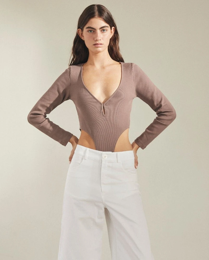 Brown long sleeve bodysuit