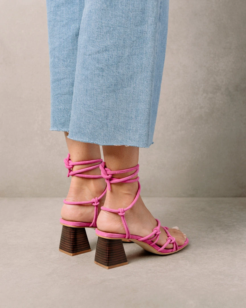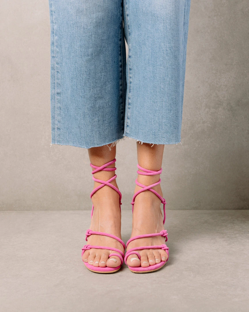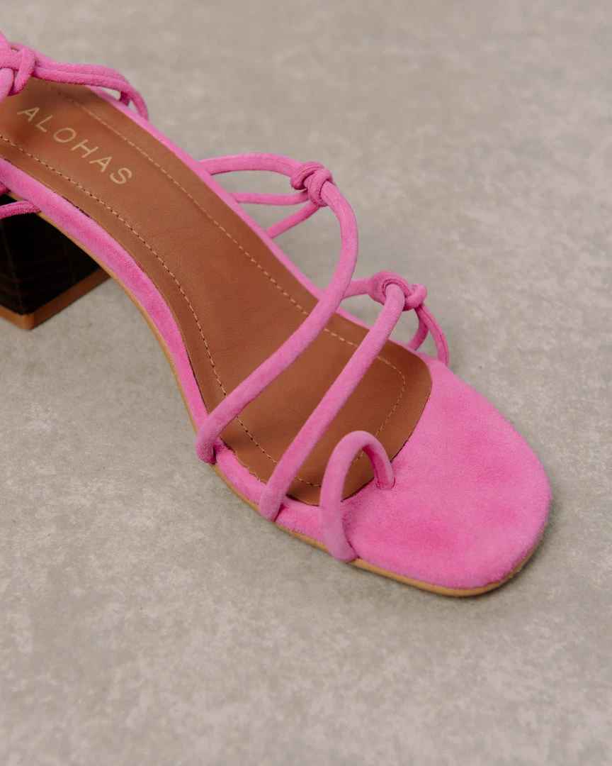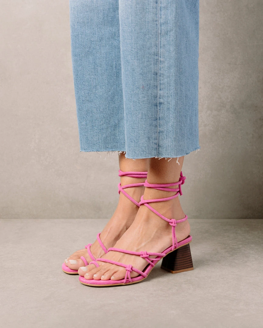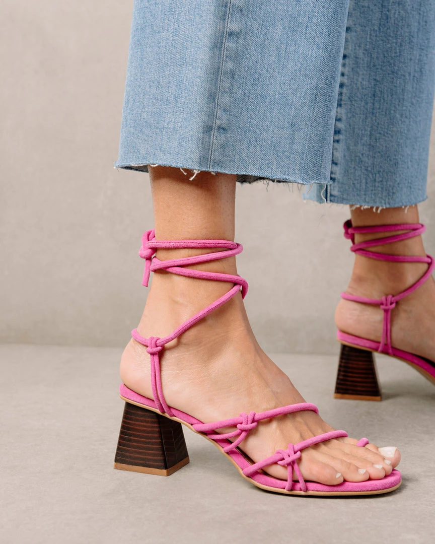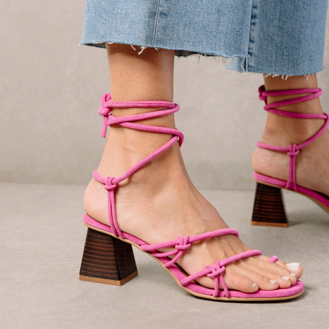 Gorgeous lace-up block heeled sandals to tie in a myriad of ways. Includes a sultry toe strap detail and enough lace to adjust as you see fit.