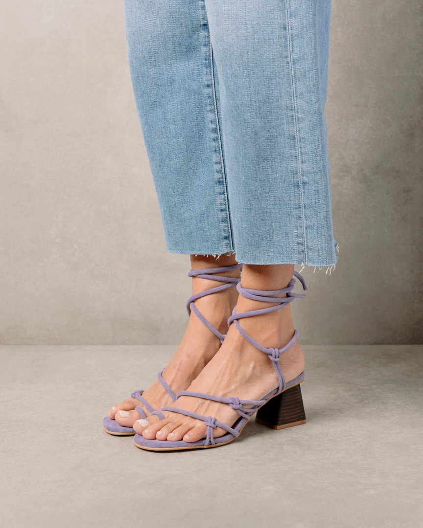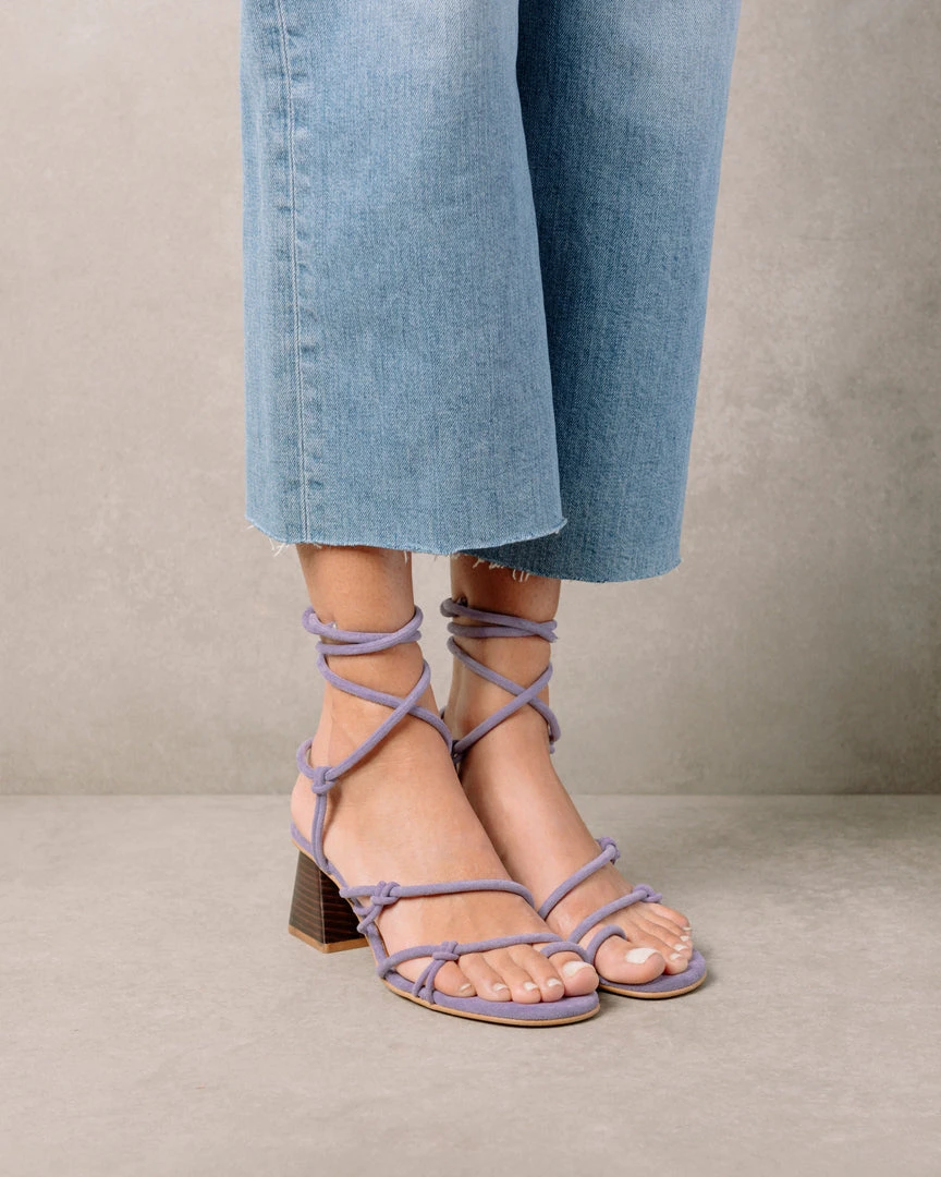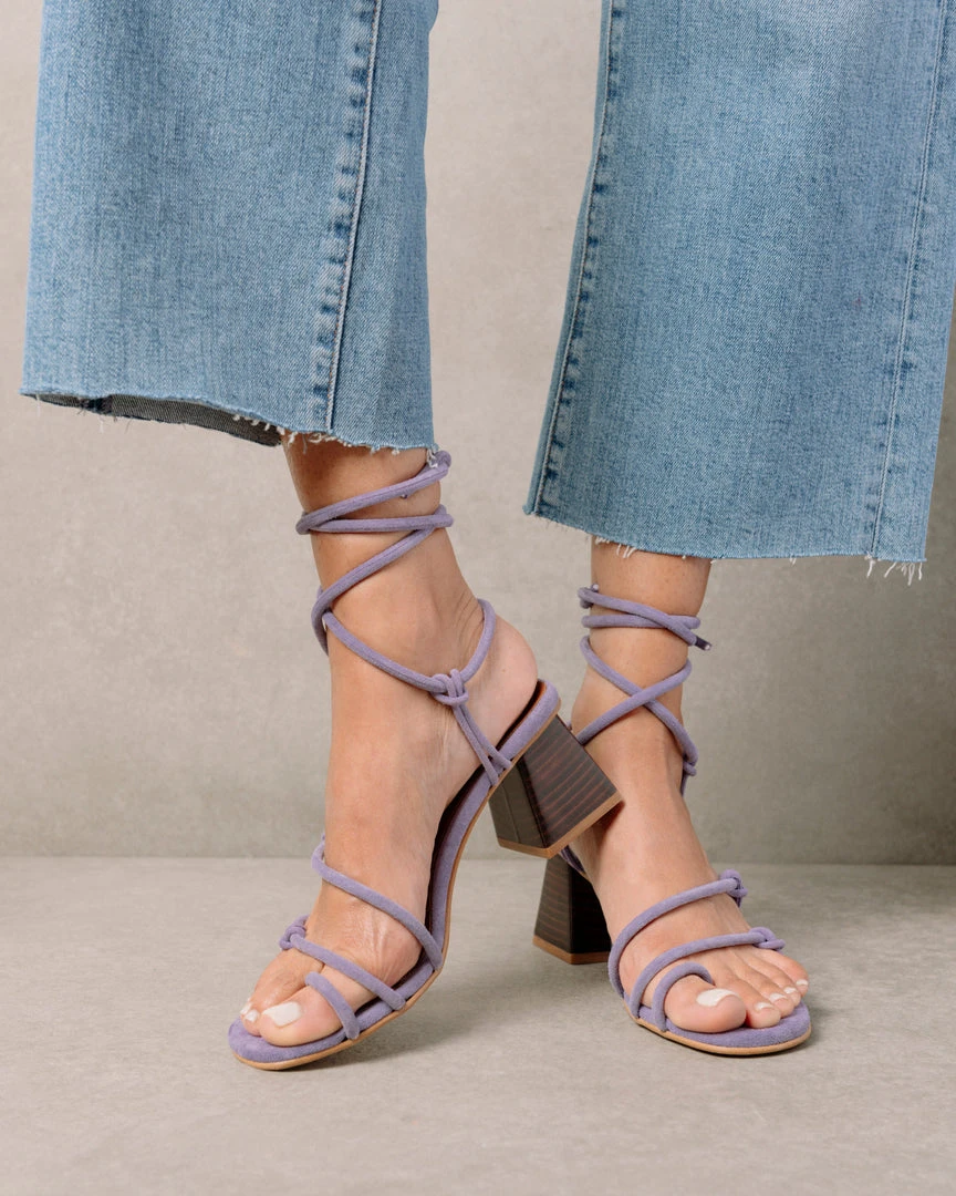Gorgeous lace-up block heeled sandals to tie in a myriad of ways. Includes a sultry toe strap detail and enough lace to adjust as you see fit.