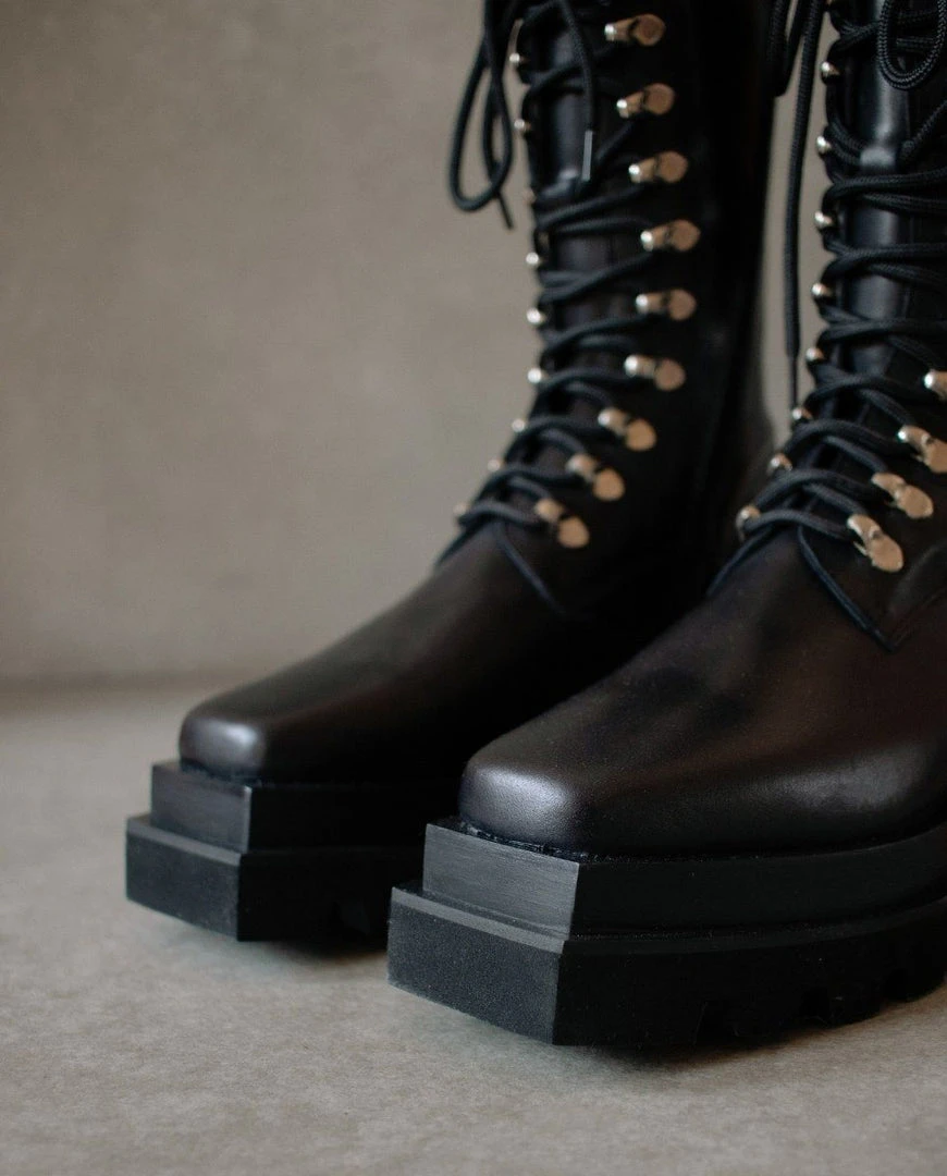 Riddled with lace, The Hangar are sophisticated, 11 eyelet boots and the perfect fit for any occasion. With protective rubber to wear in rain or shine.