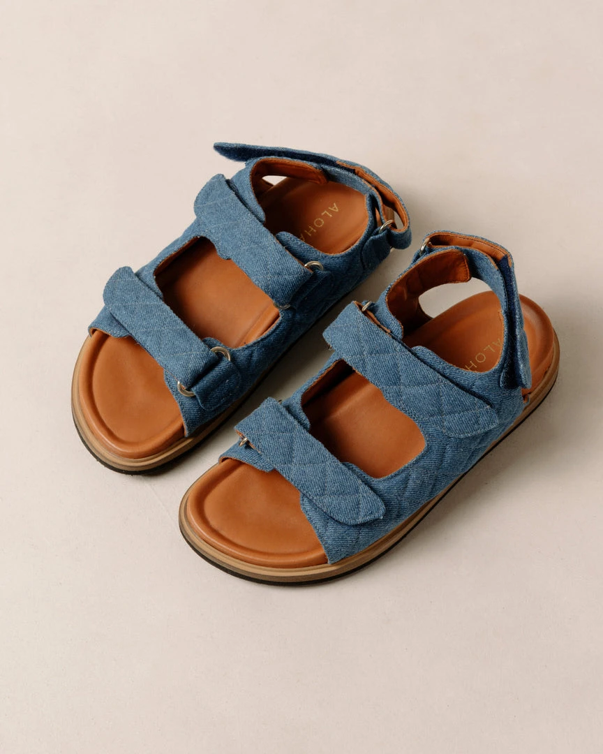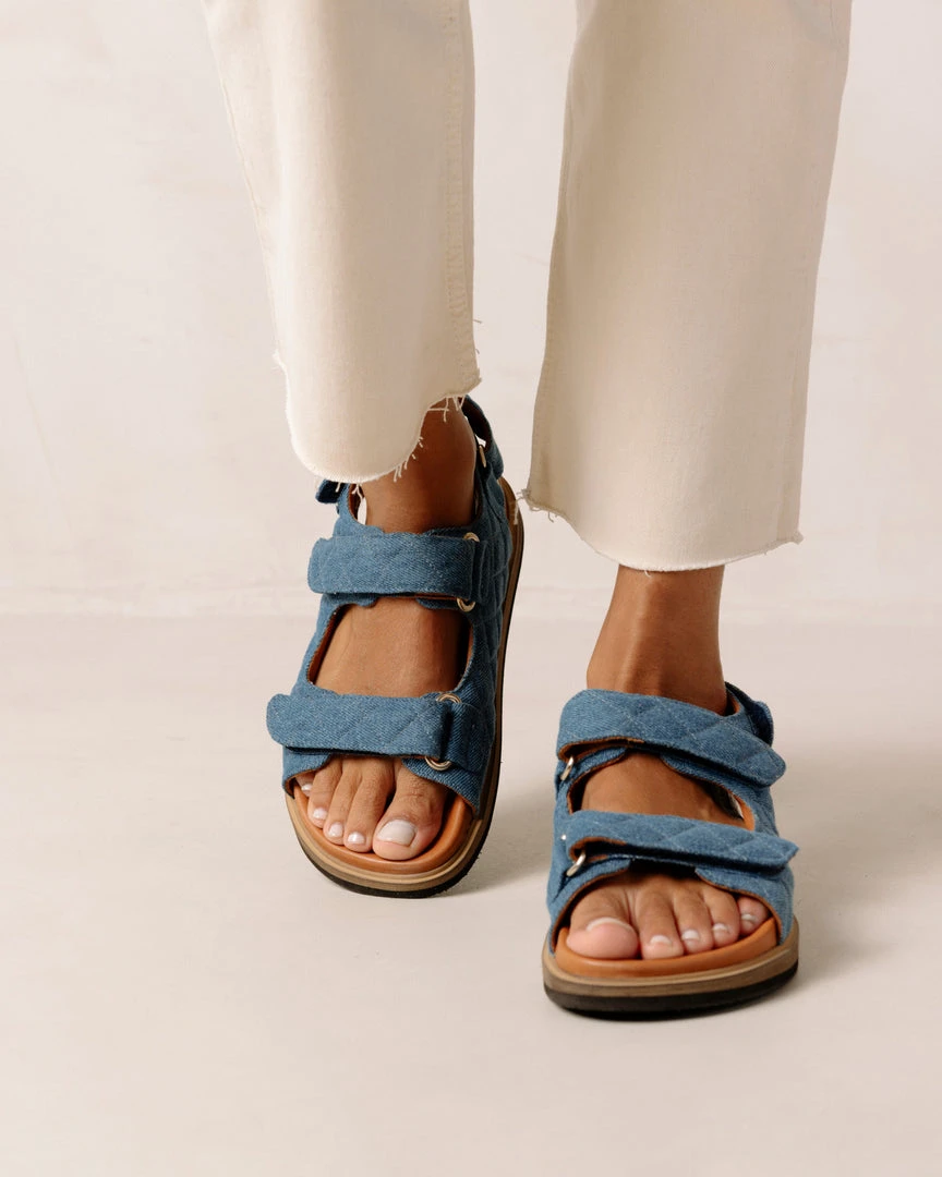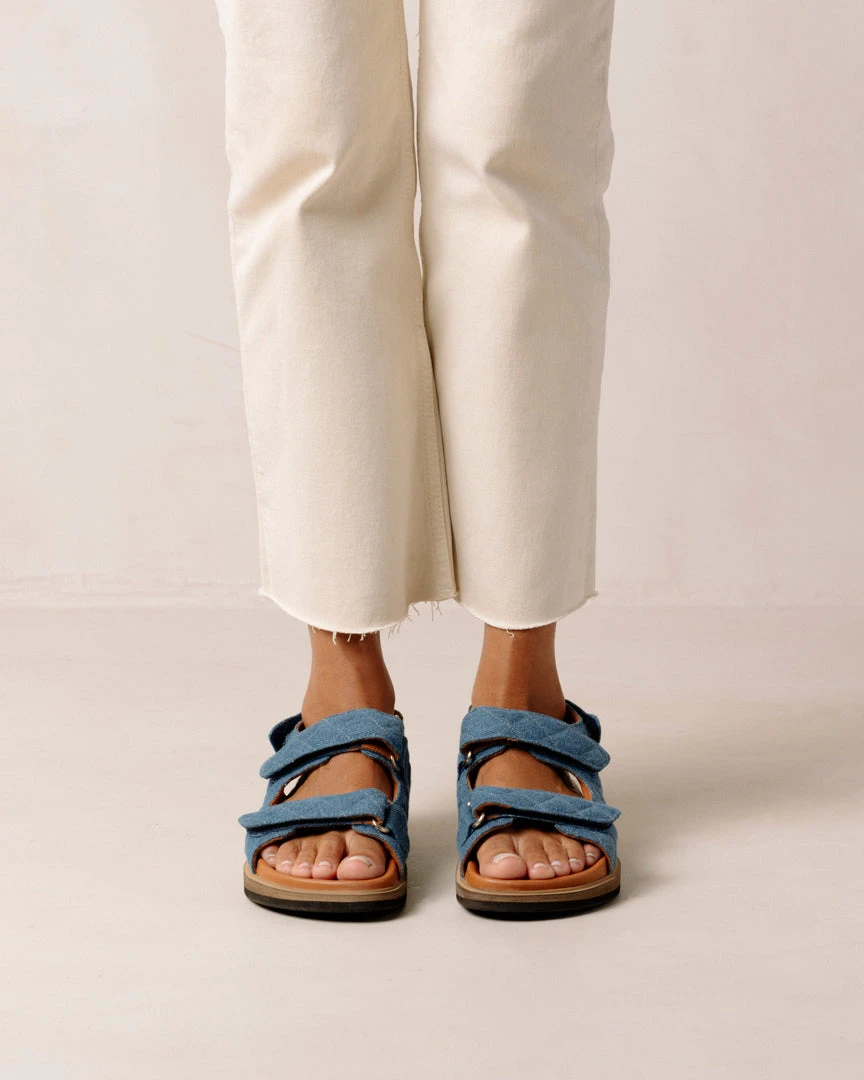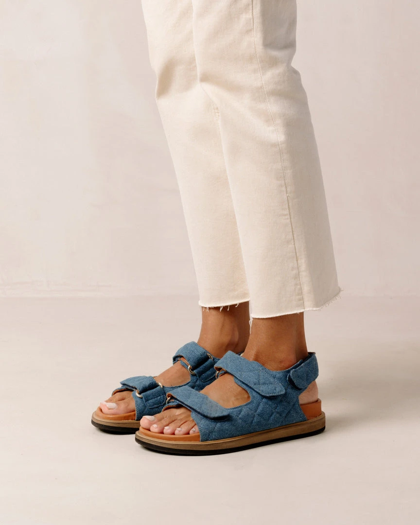 Stripped to basics in this wide-soled leather sandal featuring two front velcro straps through oval hoops.