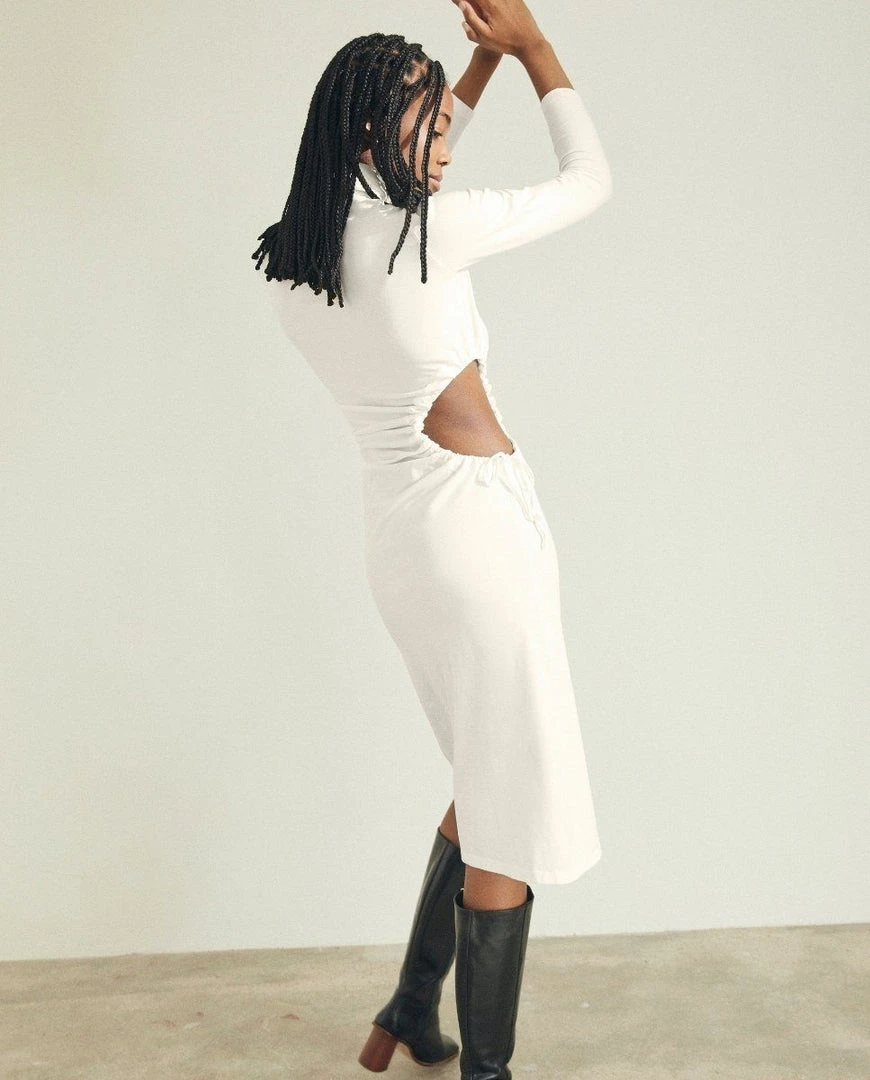 With a high-neck and a stringy side-pit for a sultry silhouette, KNOCKOUT is the belle of the ball.