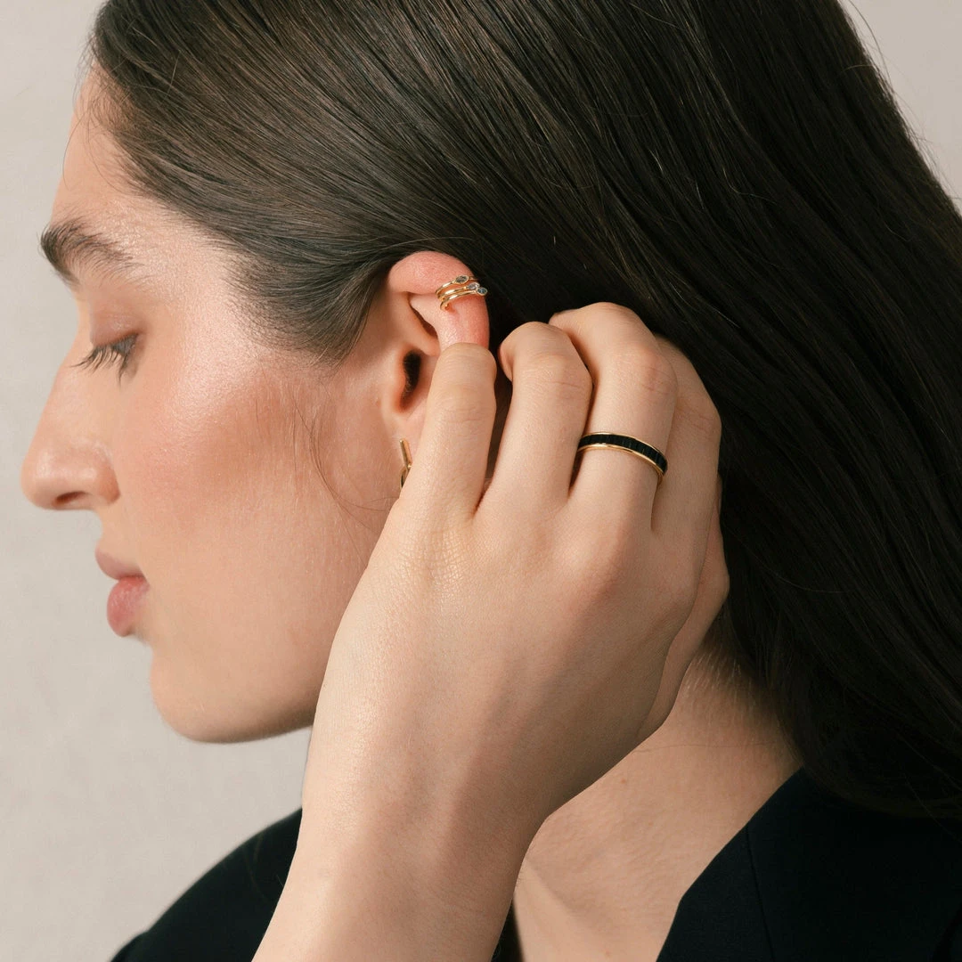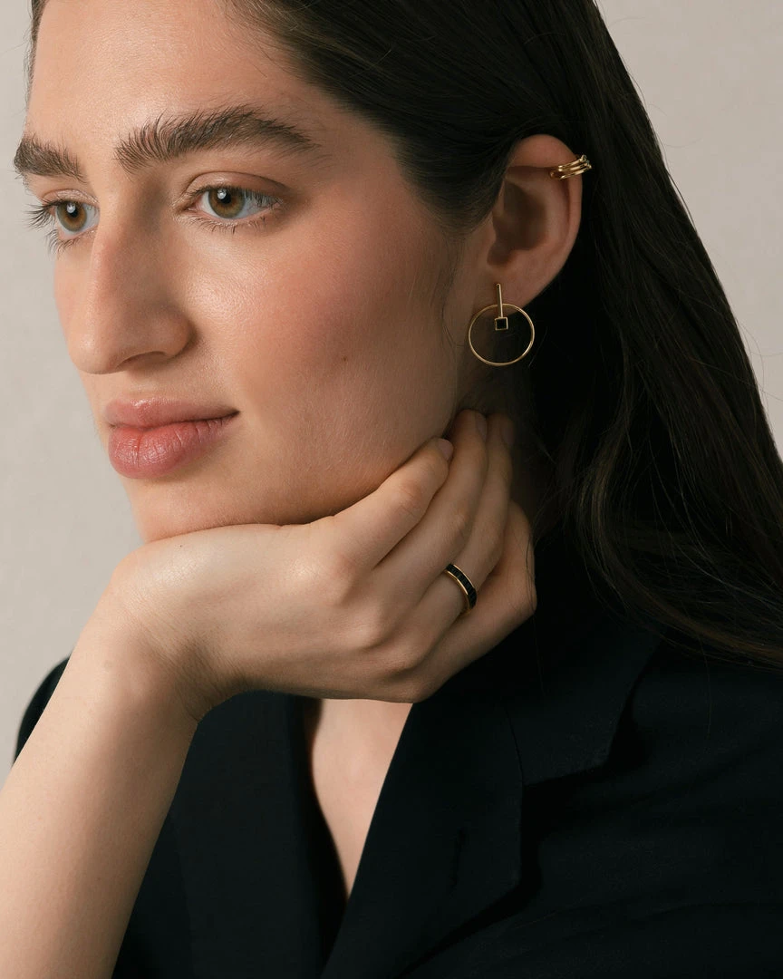 Flawless gold prism earring completely surrounded by marvelous gemstones that neither you nor anyone will be able to look away from.