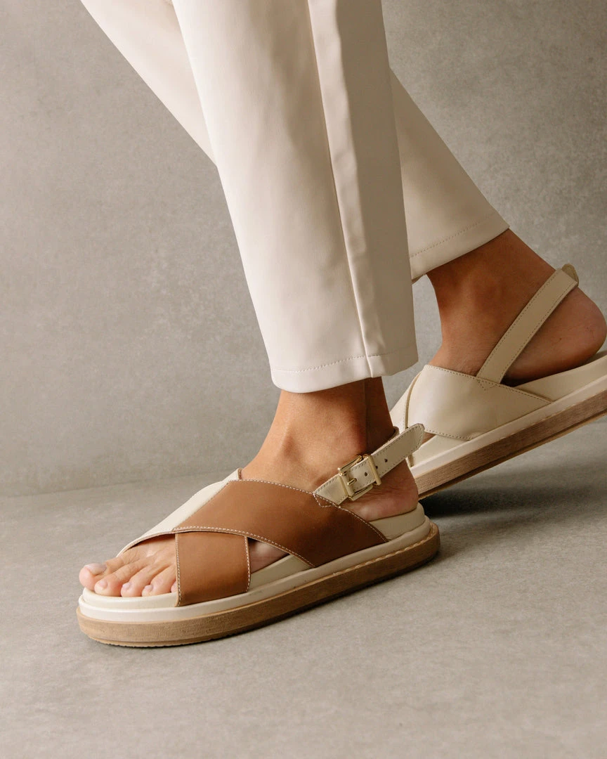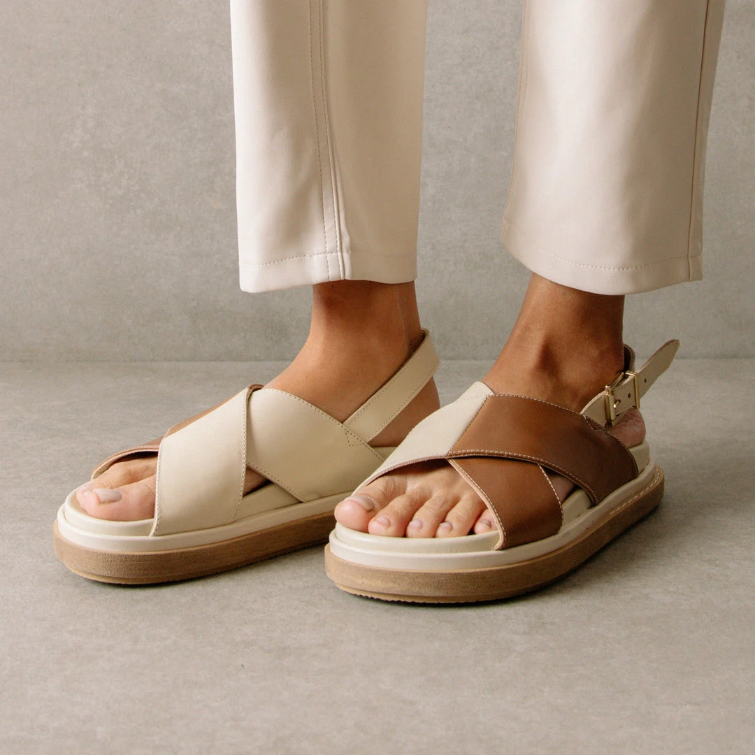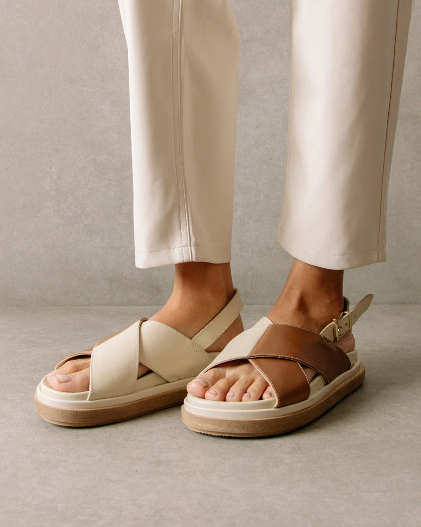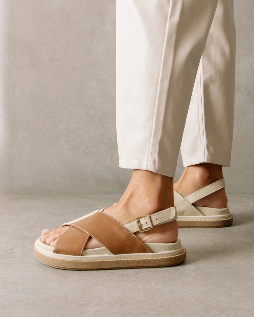 A 90s inspired oversized slipper sandal featuring a maxi double layered sole. Criss-crossed front hold and a buckled back strap for added comfort.