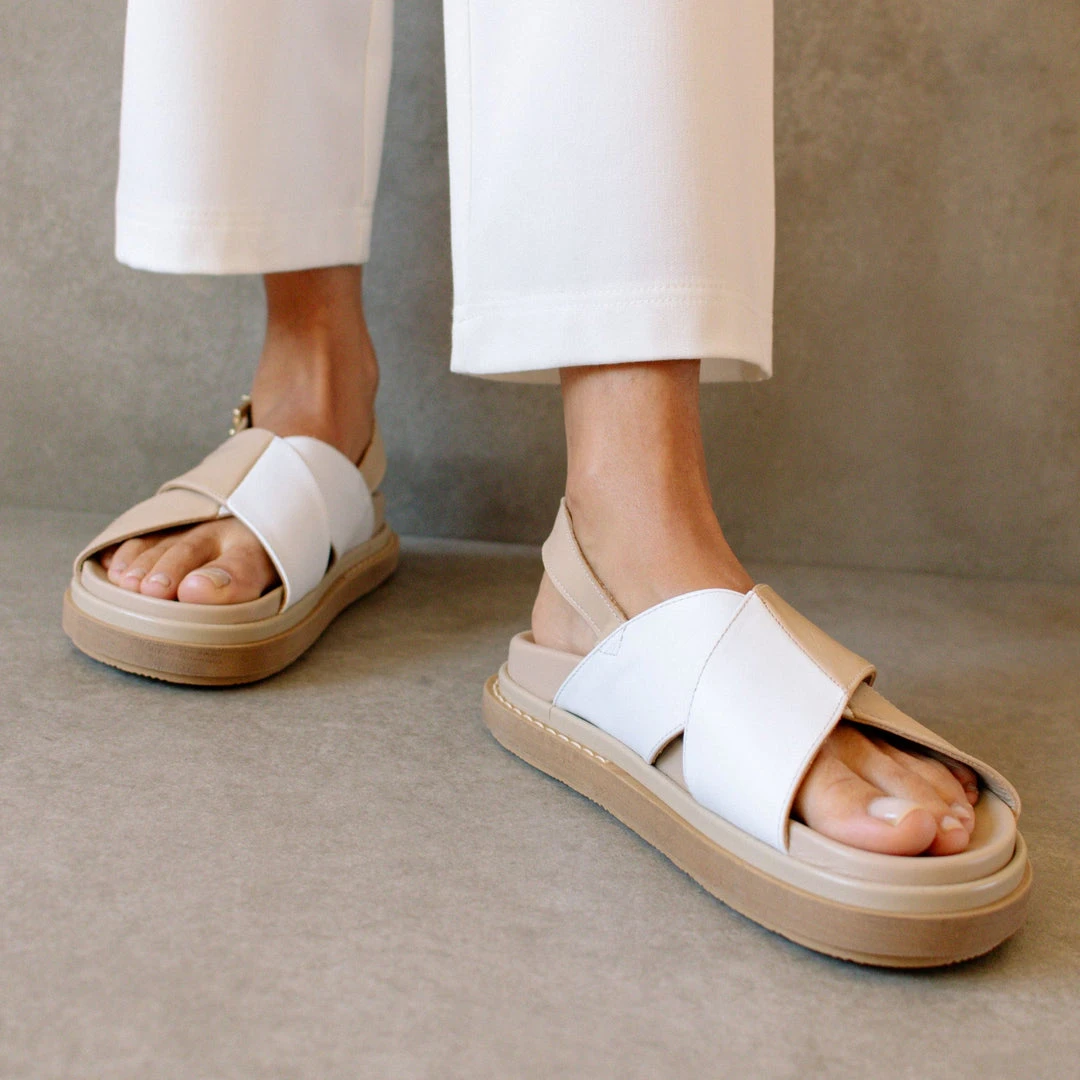 White criss cross sandals