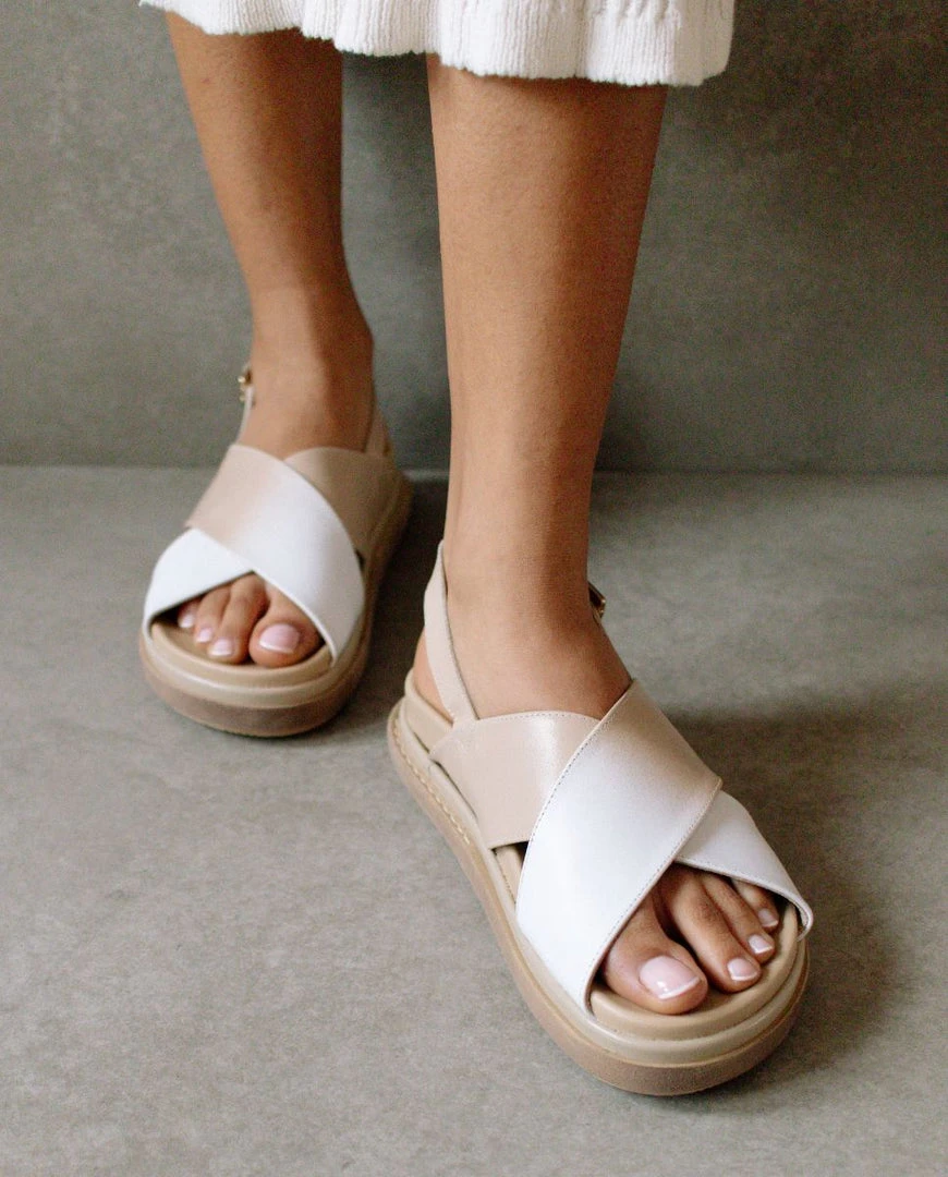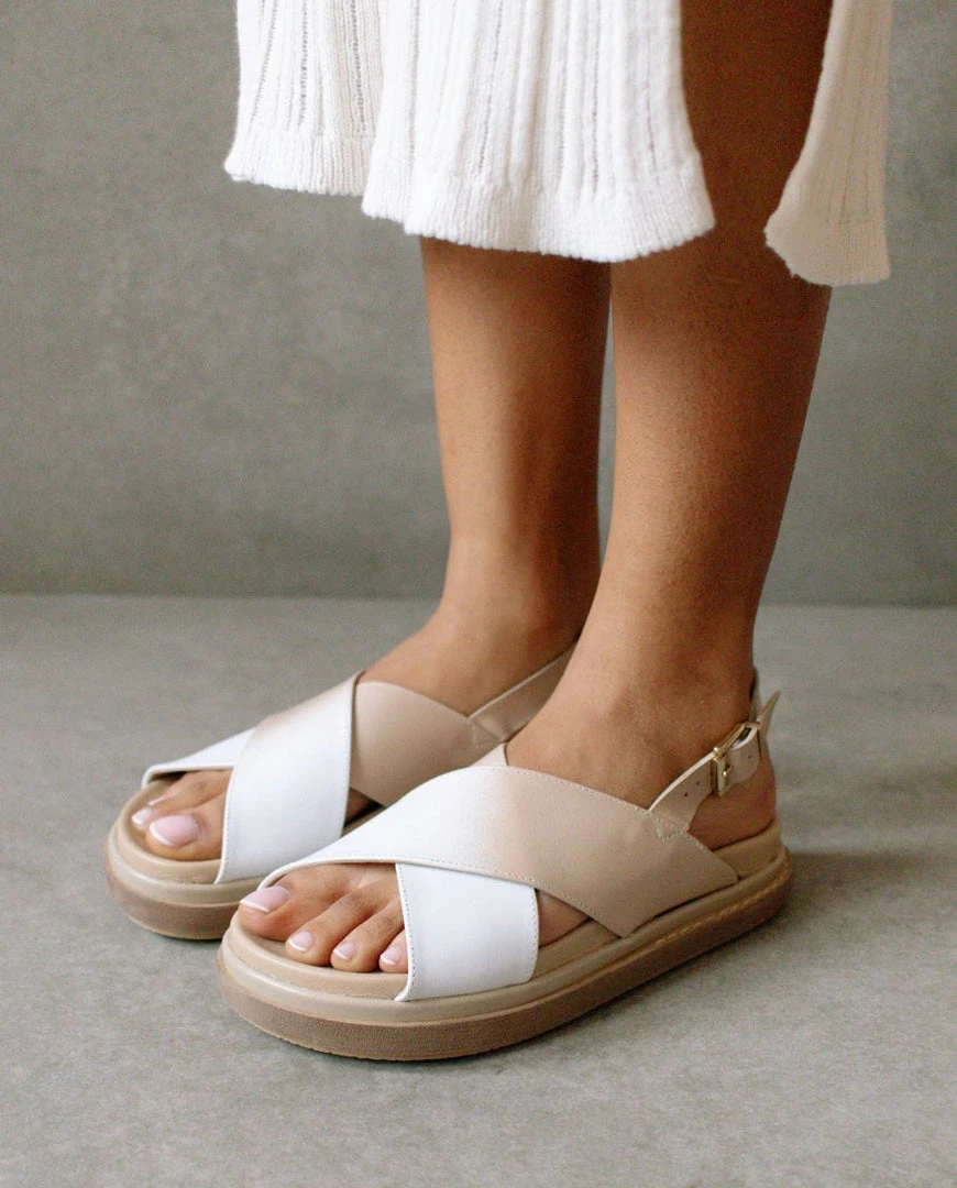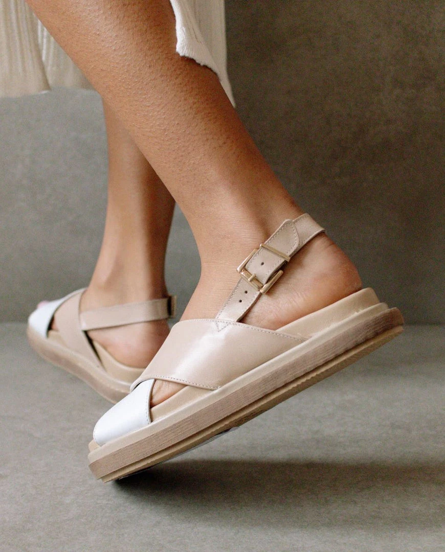The degradé you didn’t know you needed. These off-white leather clog sandals have a buckled backstrap and a maxi double layered sole. They also feature two criss-crossed straps and an open toe for breathability. Its complimenting shaddes evoke a summer sun kissed look.