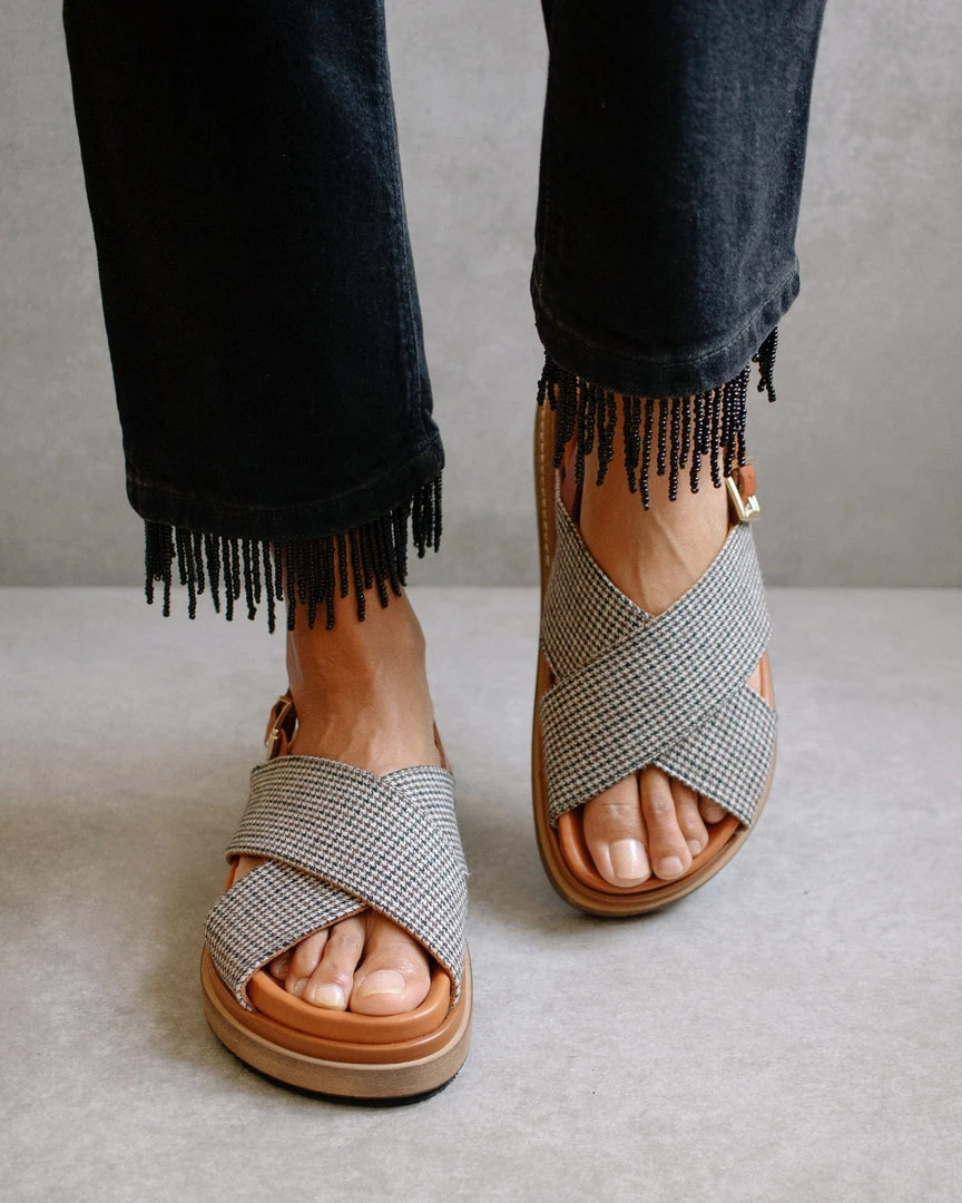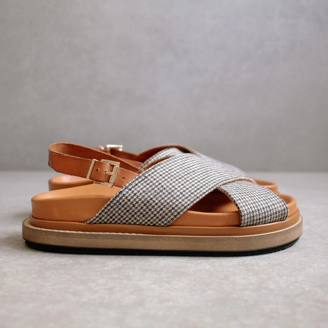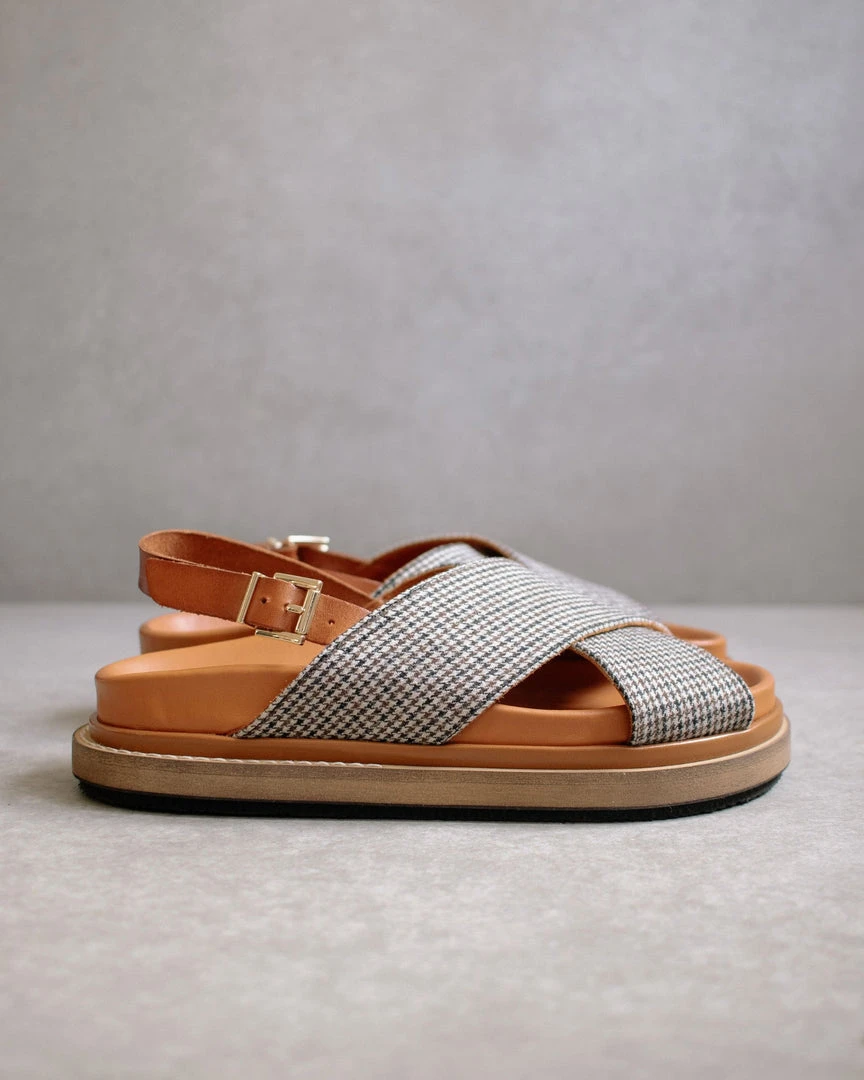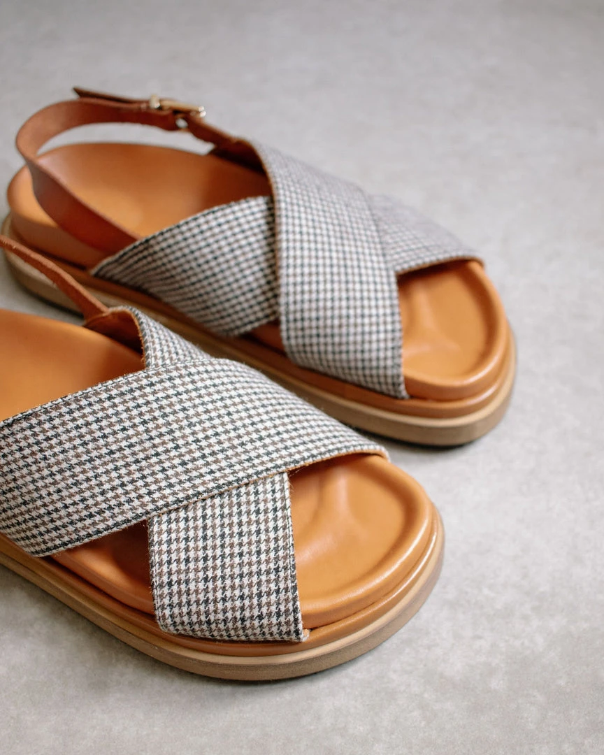 Marshmallow Harris Check Tan Leather Sandal