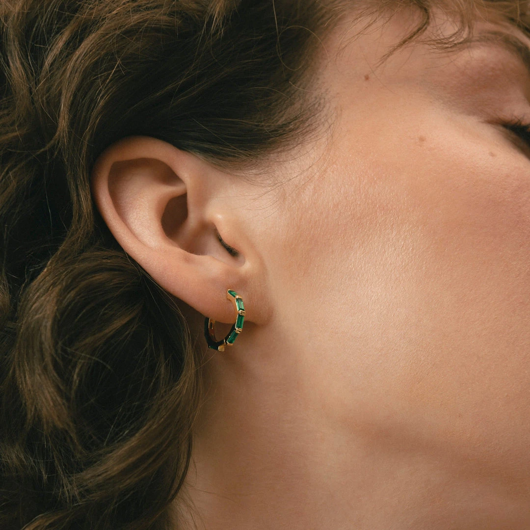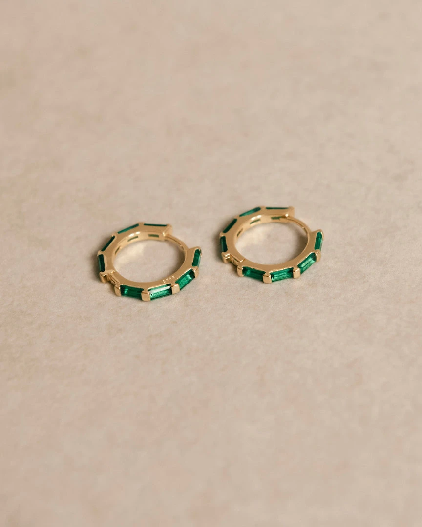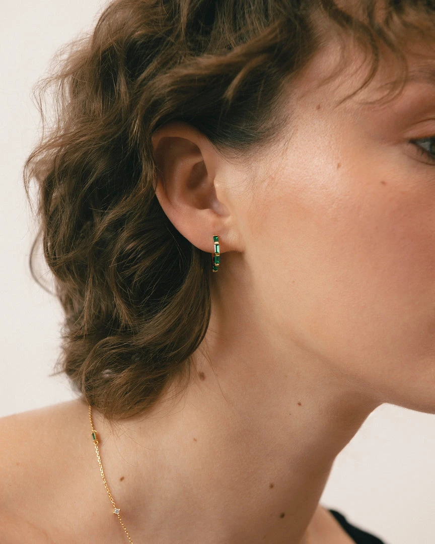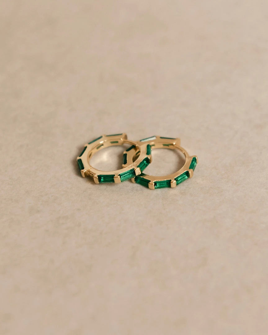 Gold and green hoop earrings