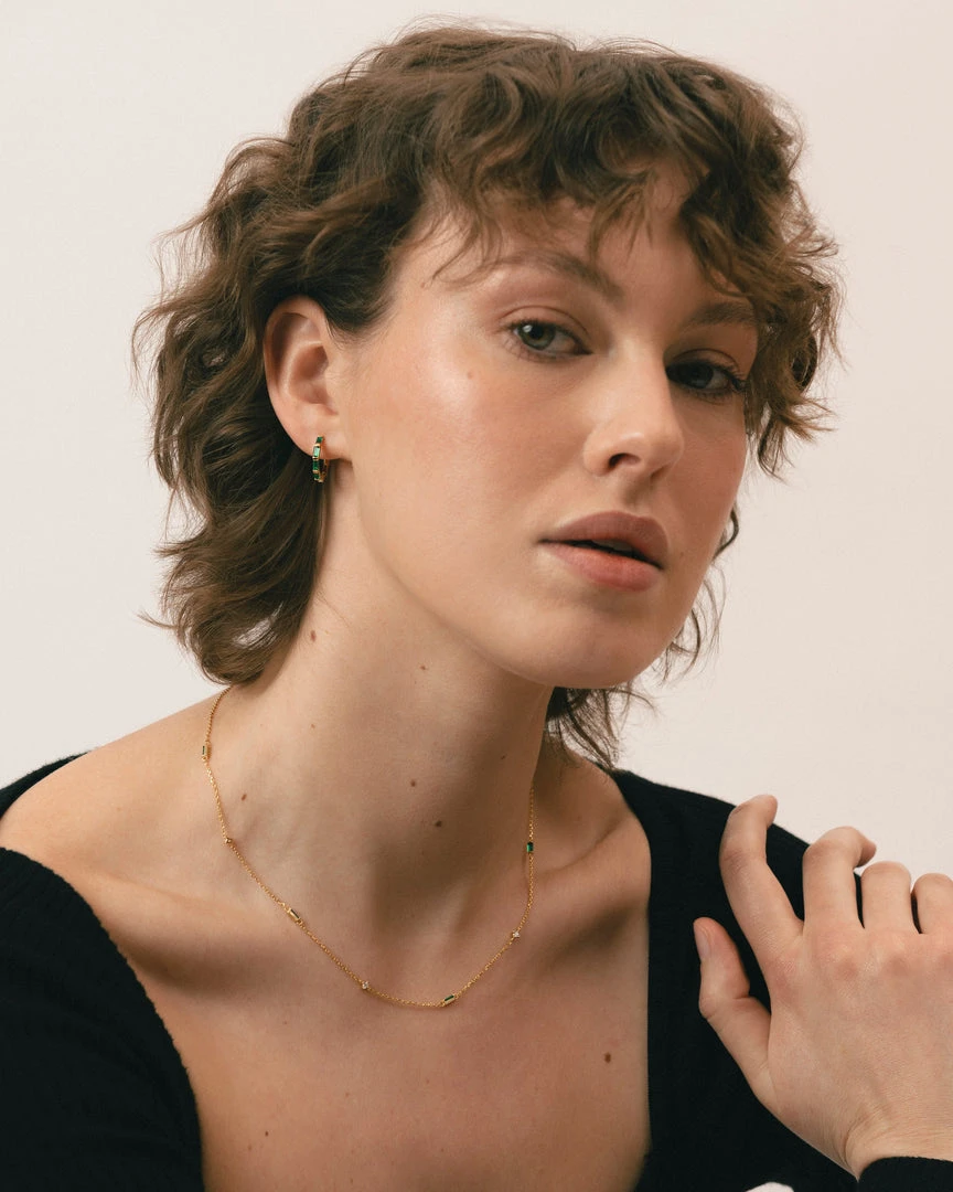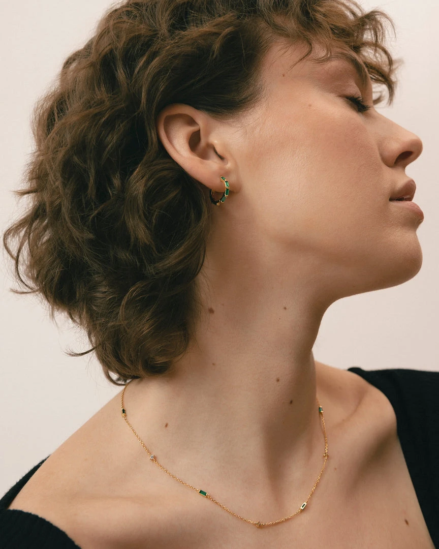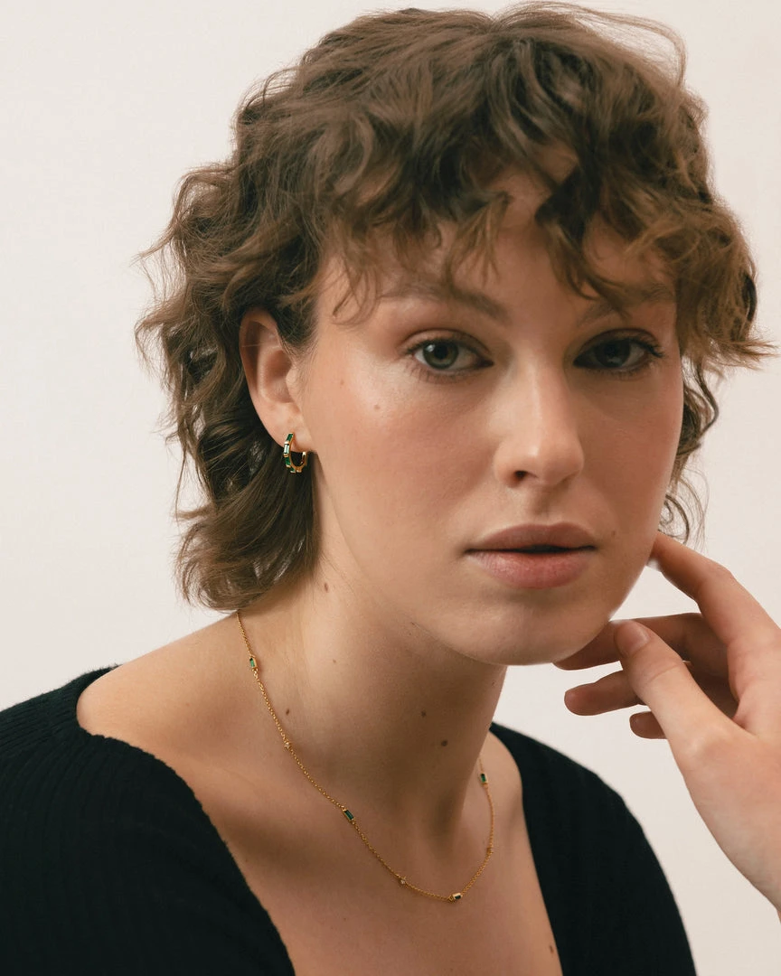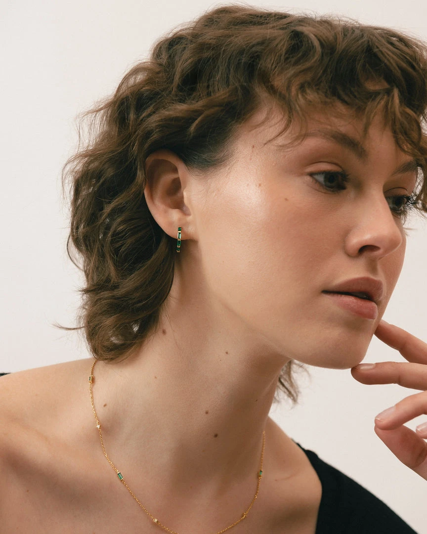 Gold and green hoop earrings