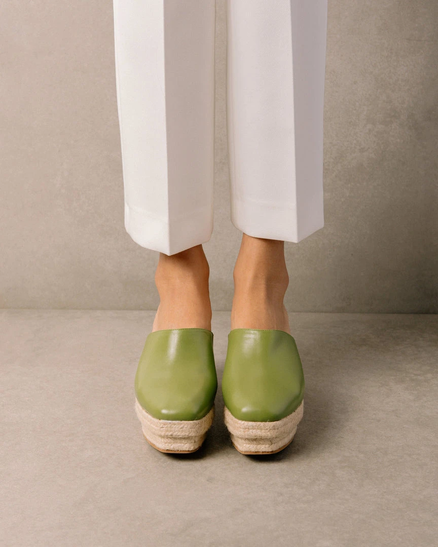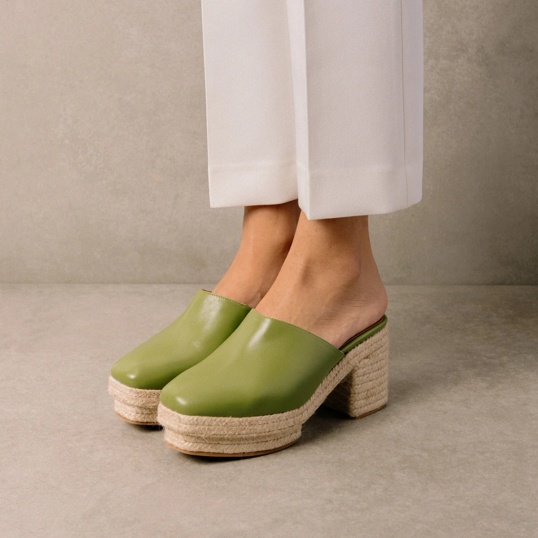 Clog style leather espadrilles with a closed toe and a sultry summer heel.