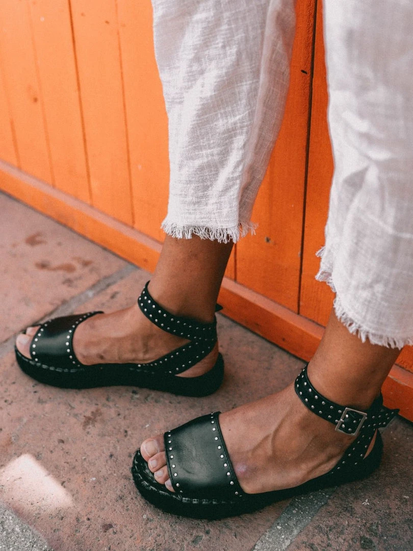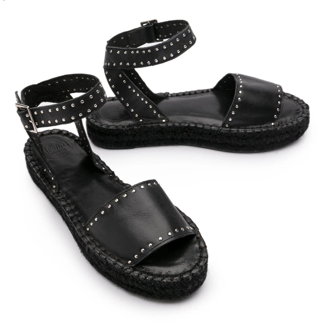 The Rome Studded Espadrilles Black is handcrafted by artisans in Spain. Chic and elegant sandals from the beach to the work, this essential will give versatility to your looks.