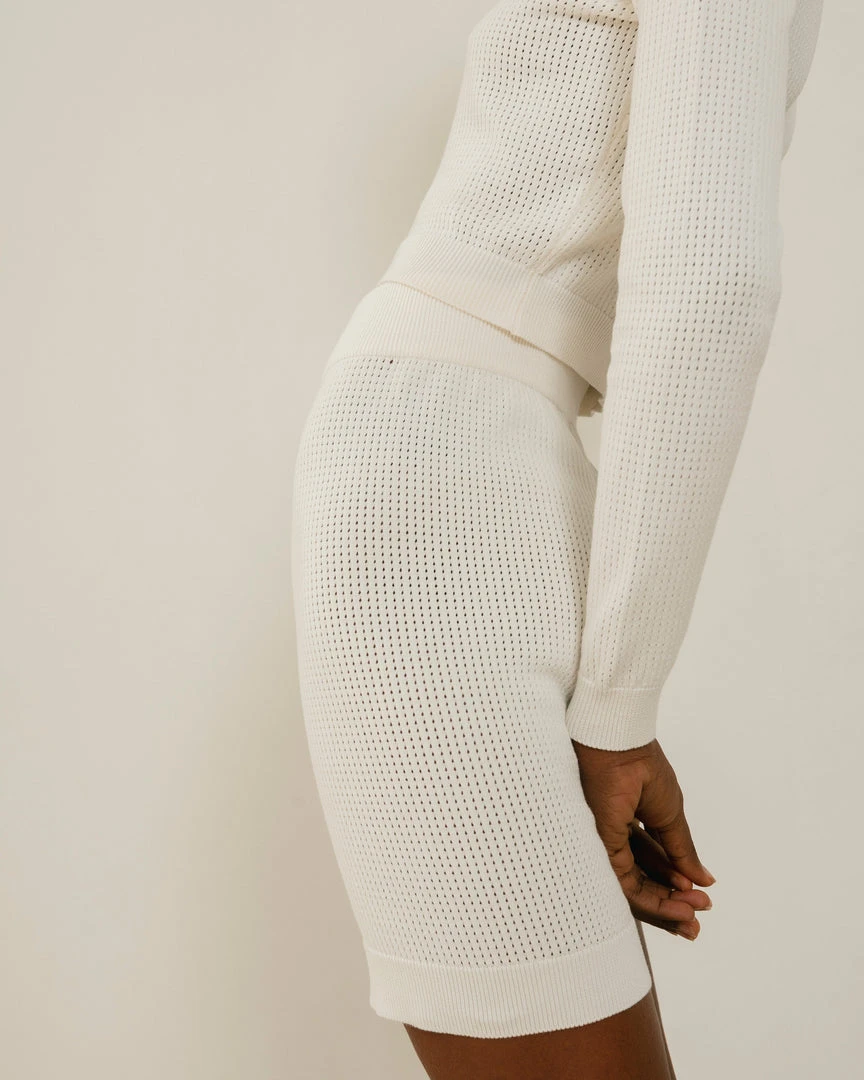 Gorgeous high waisted knitted shorts with cotton texture and a ribbed waistline for maximum comfort and athleisure vibes.
