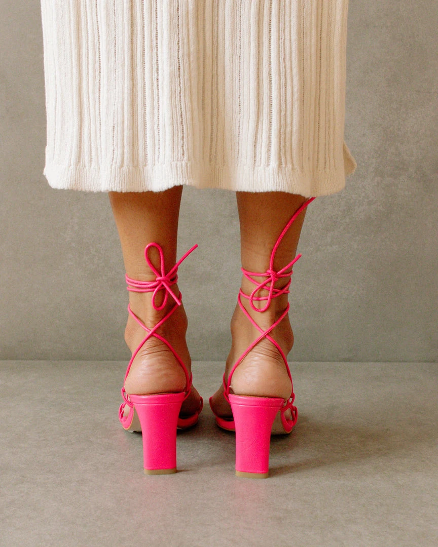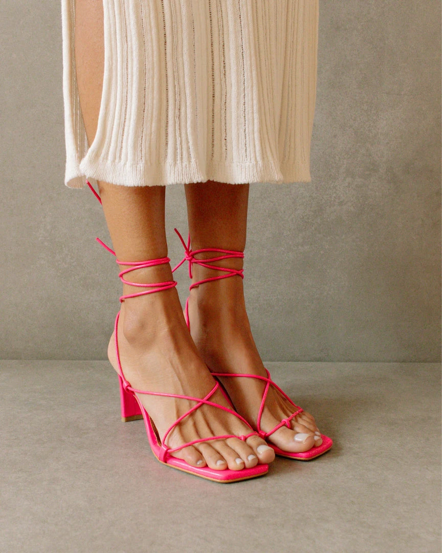 Made by hand in Spain and crafted in soft leather, this lace-up style wraps around the ankle in a barely there delicate sandal that is perfect for a special occasion.