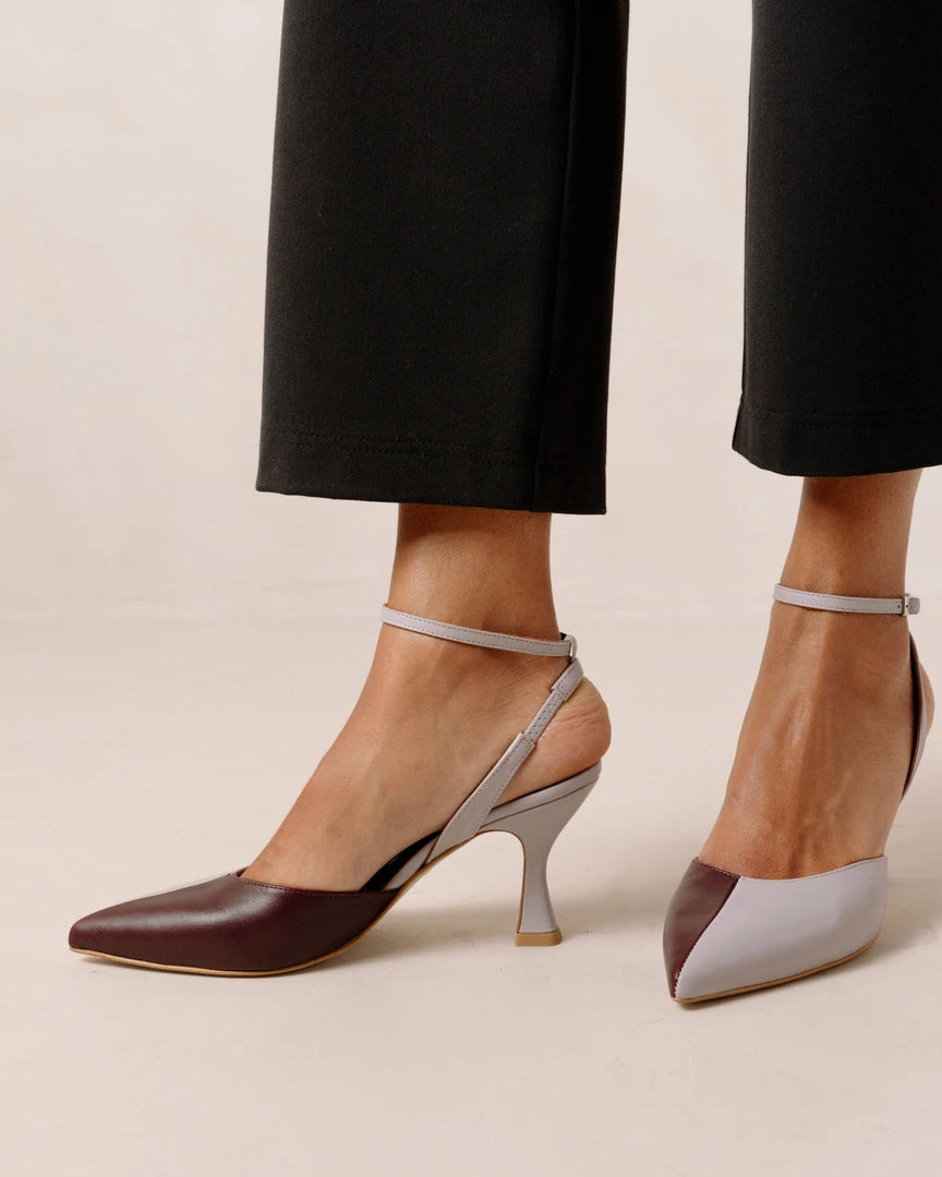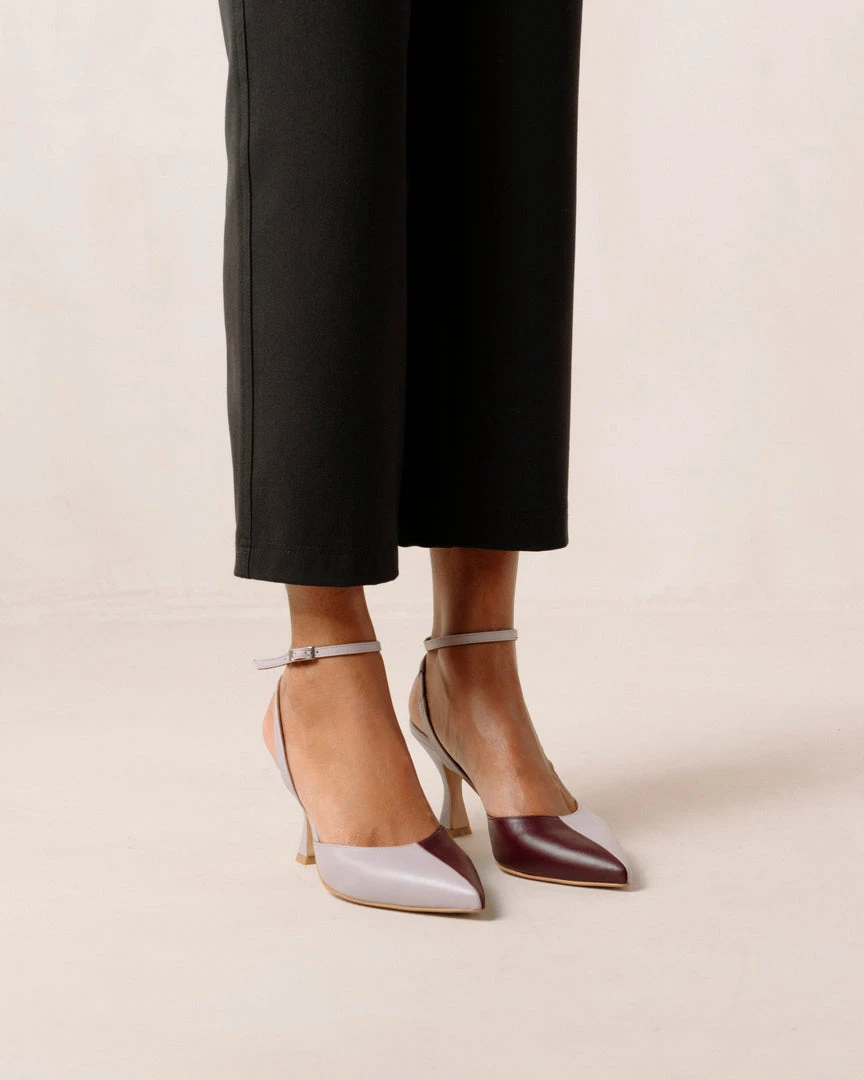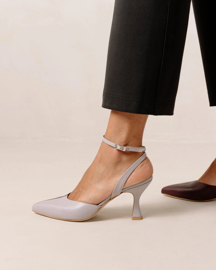 Sophisticated heel with a pointed toe and a whole lot of personality. Adjustable ankle strap for maximum comfort.