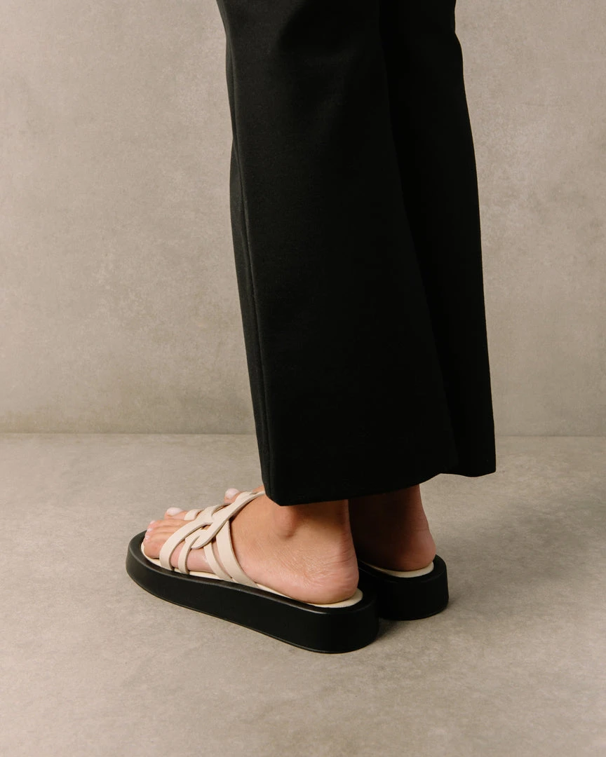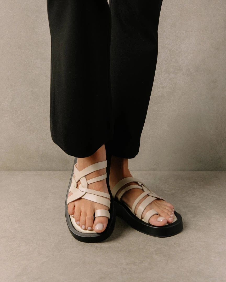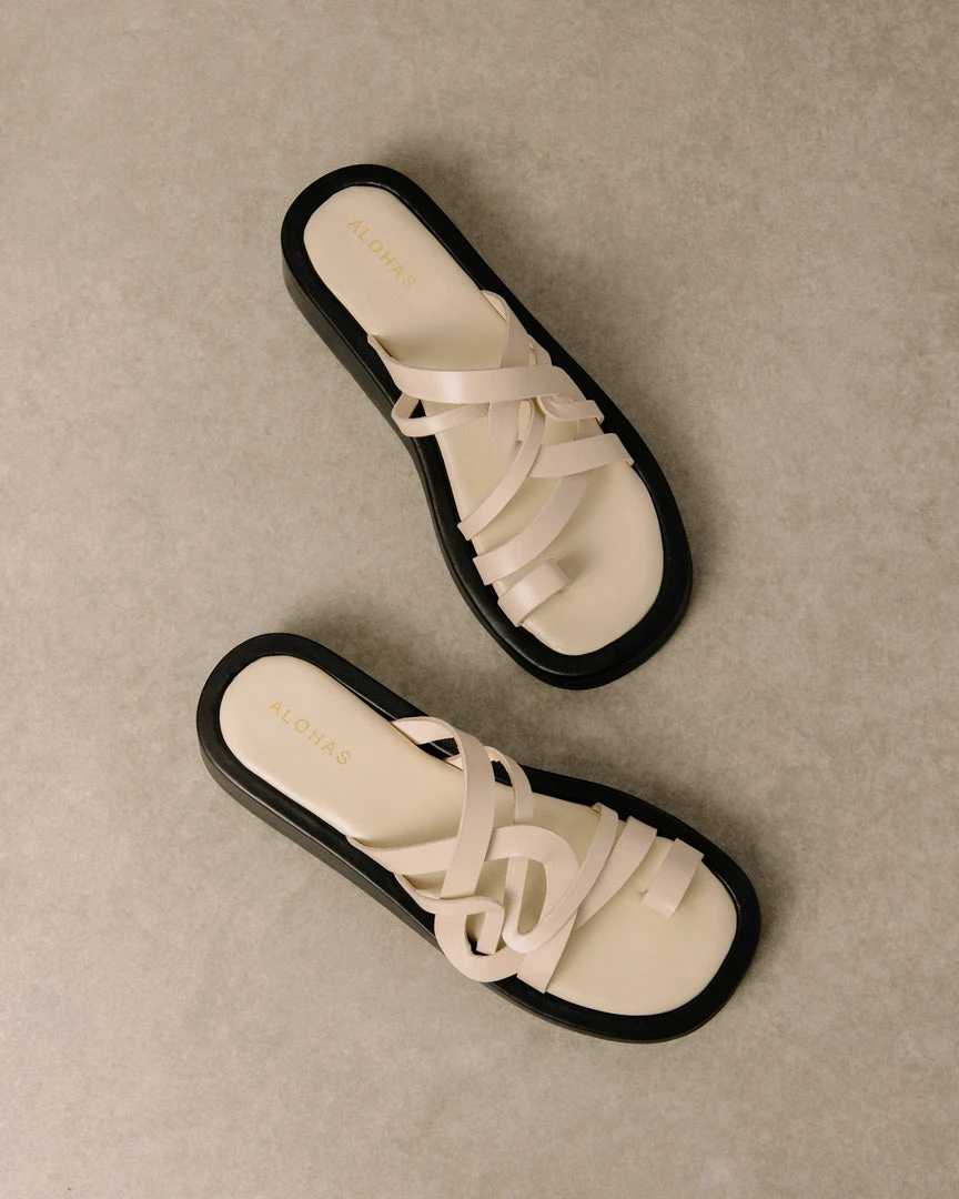You didn’t see Cool coming. Chunky flop style sandal with toe ring and luxurious leather criss crossed straps for support.