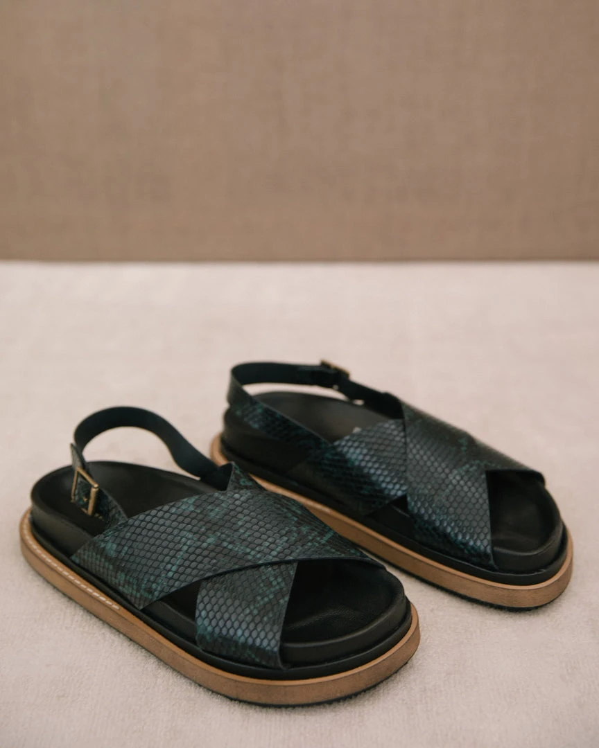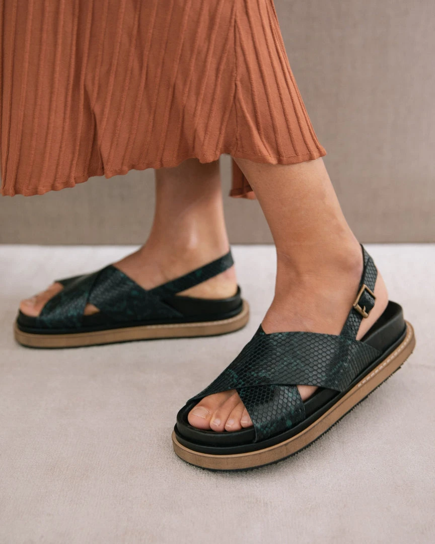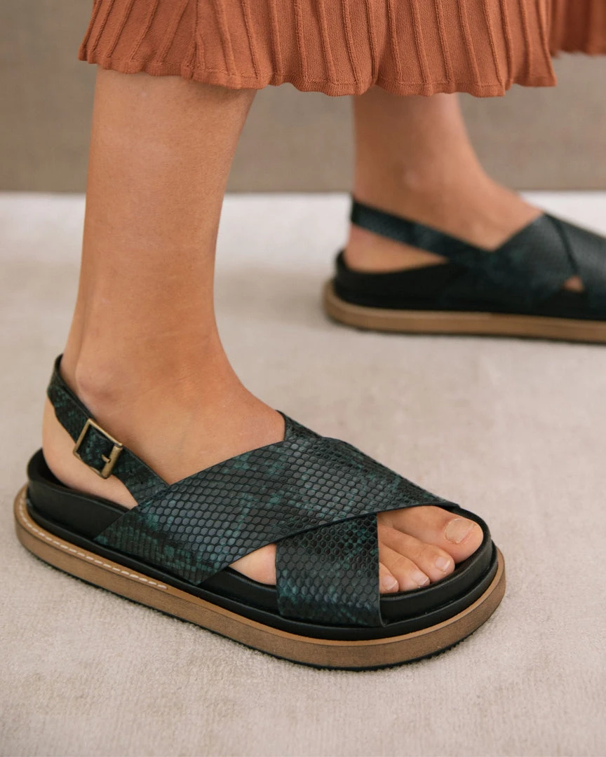 This ’90s-inspired’ sandals are made from smooth leather and have two wide straps that cross over our feet and back starp to provide us with the perfect grip. Wear them with retro labels.