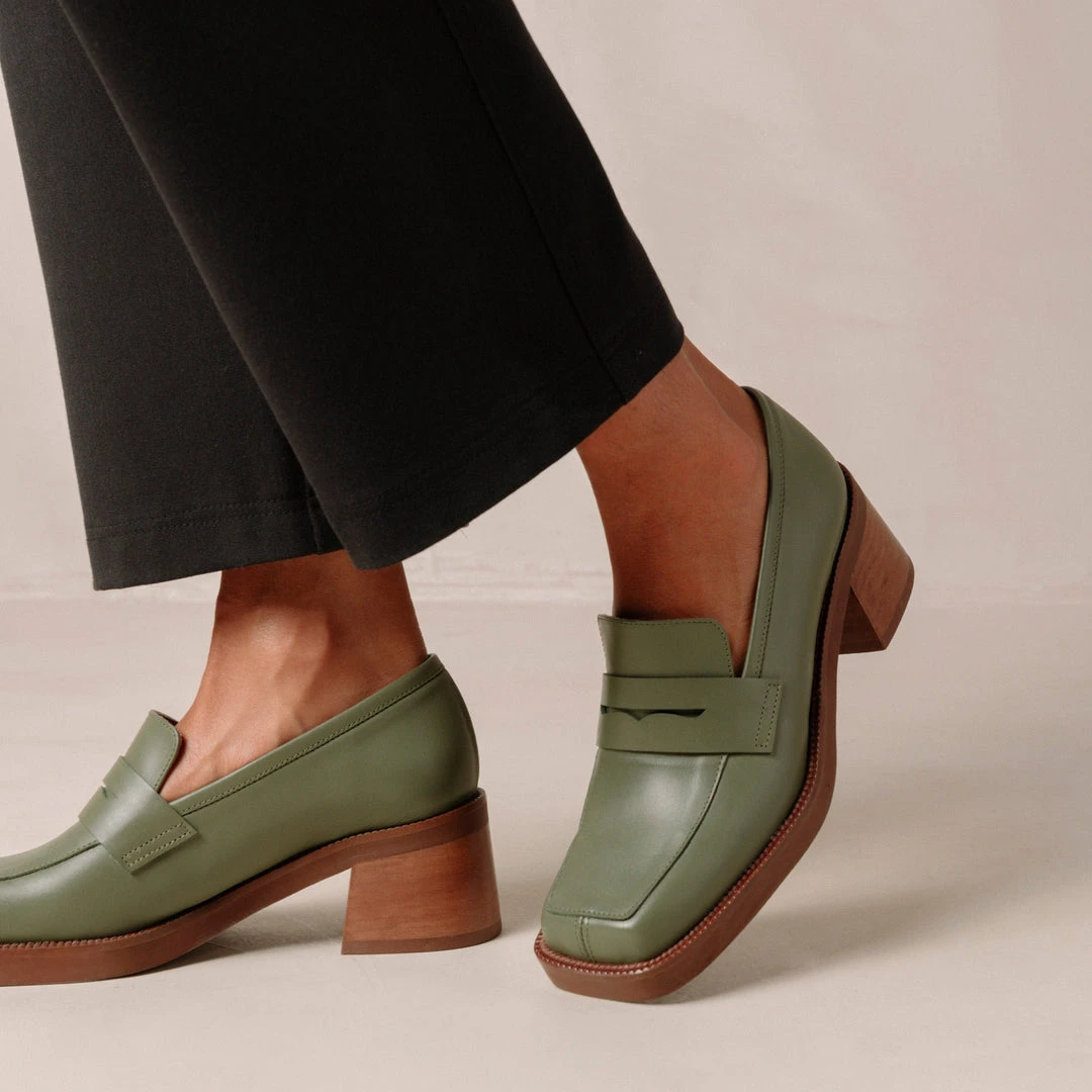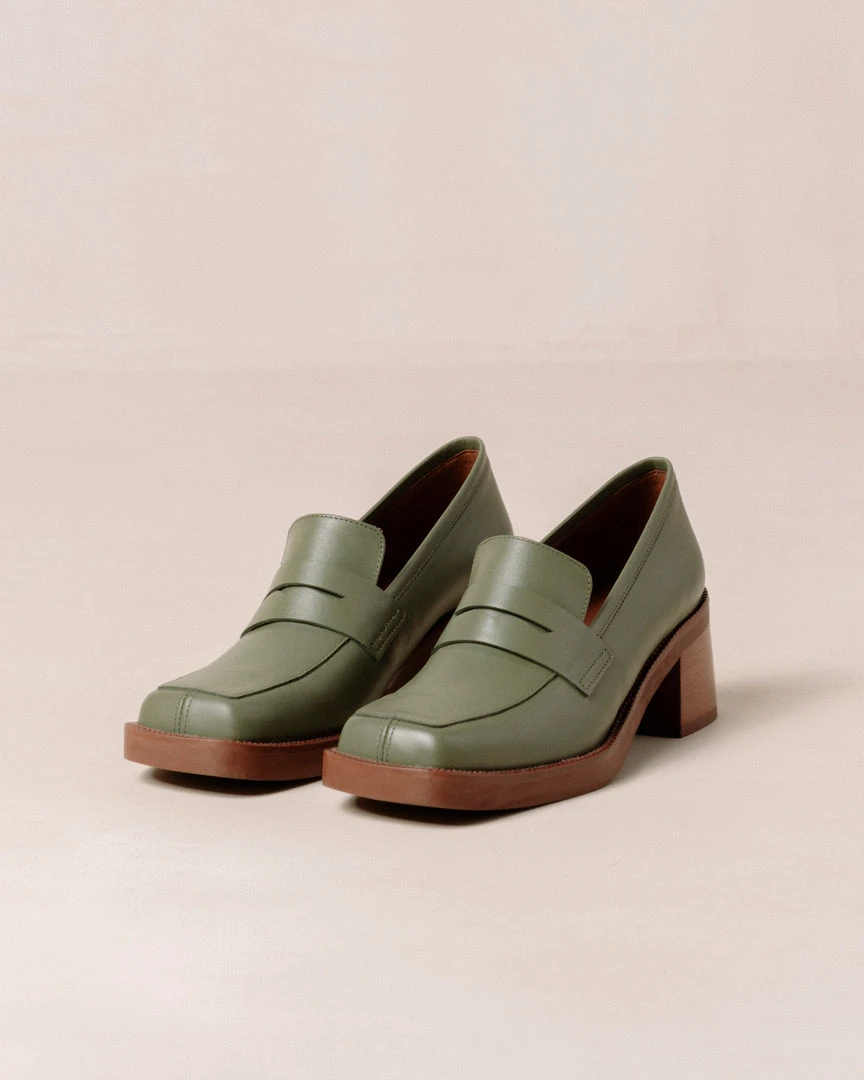 Sophisticated loafer with a low wooden effect heel. Ideal for those who want a little flattering elevation without sacrificing comfort.