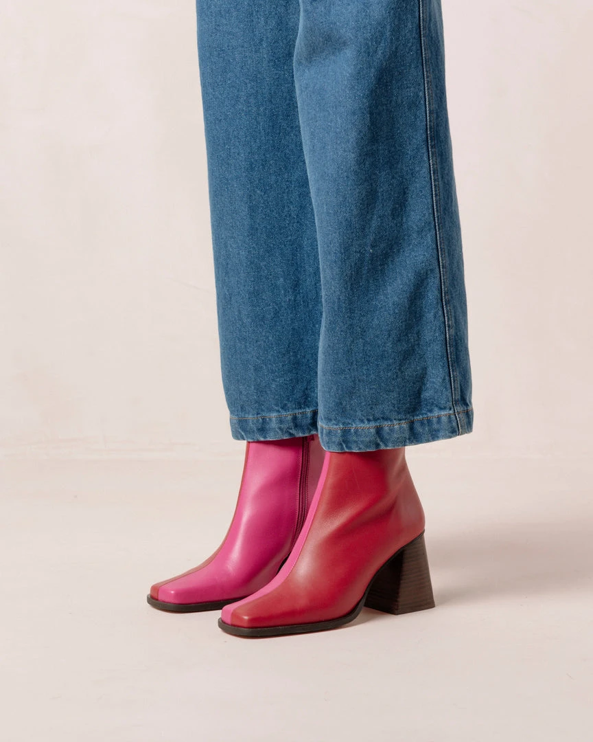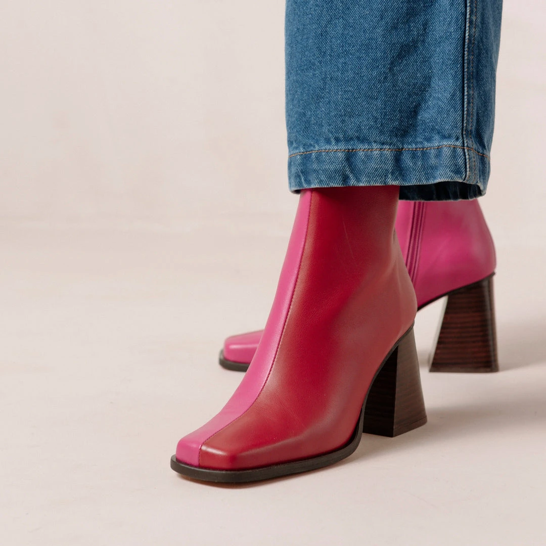 Get the quintessential 90s look with the wide block heel on this slim ankle boot. Zips along the side to elongate the legs and create a flattering silhouette.