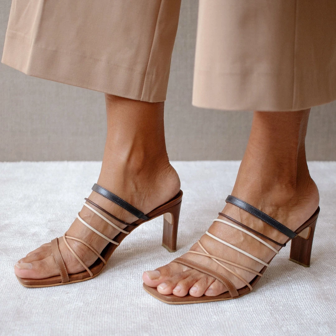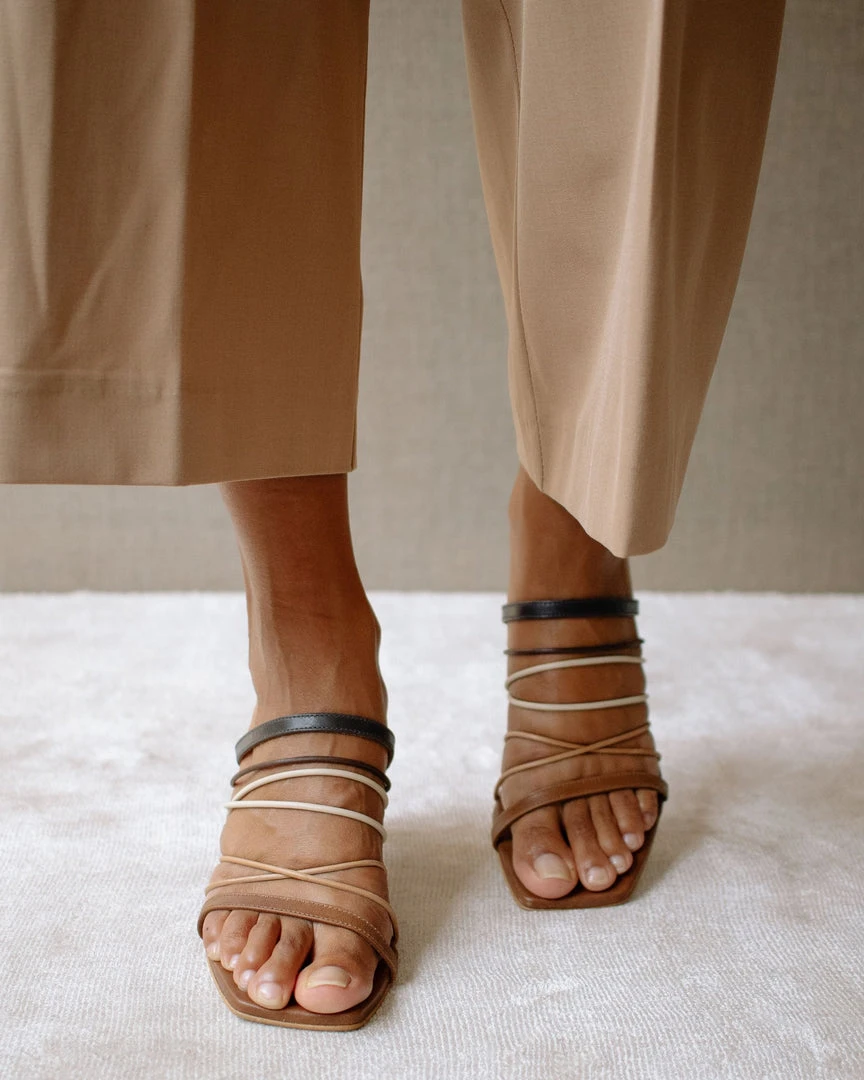 Extra thin straps in the middle, framed by two slightly wider bands. Messy in the best way.
