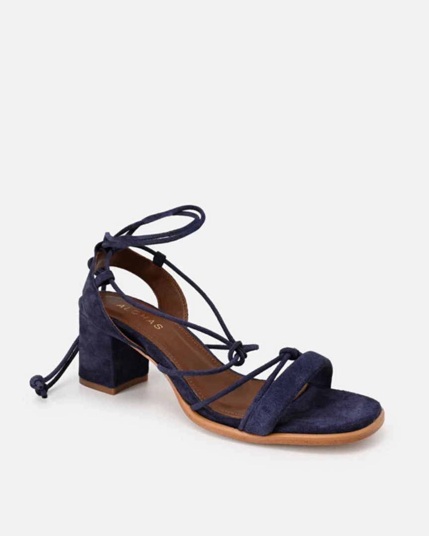 Knots and thin straps criss-crossed in a bright-colored, summer-evoking sandal. Featuring a block heel that adds comfort to a dressed-up look.