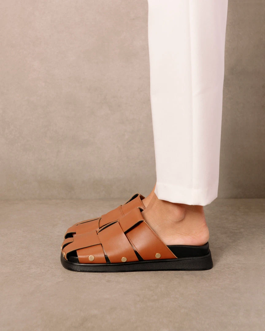 Square toed mules with a comfortably chunky sole and interweaving geometric straps. Make these the statement piece of your summer wardrobe.