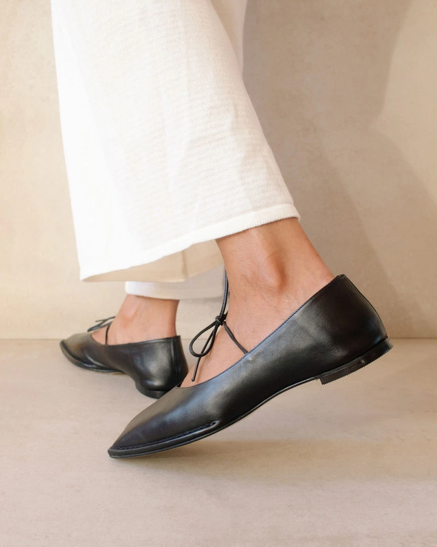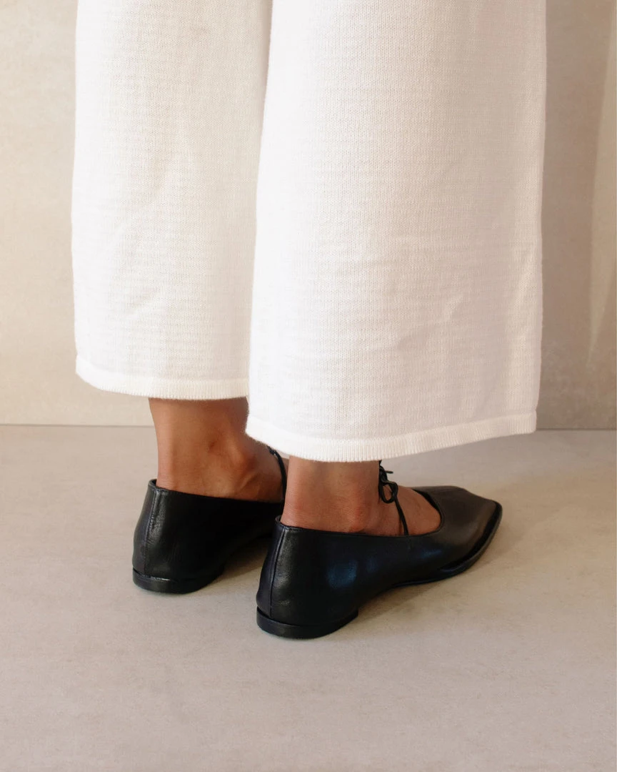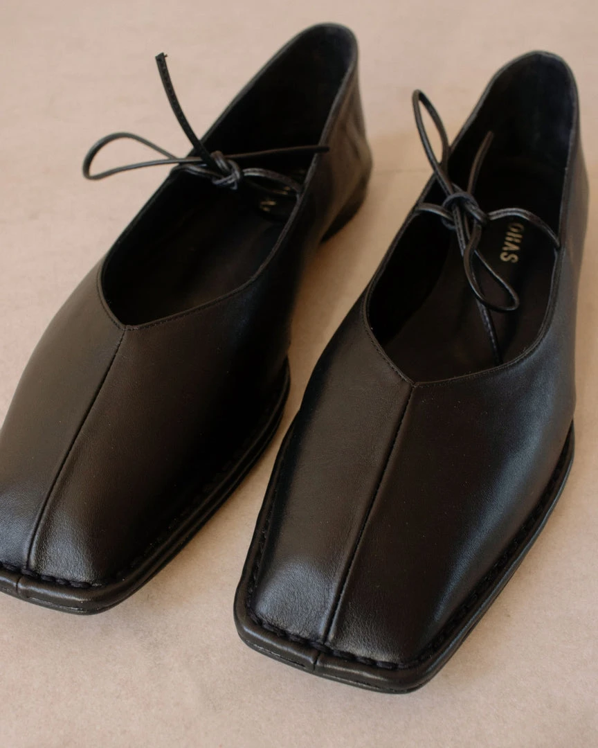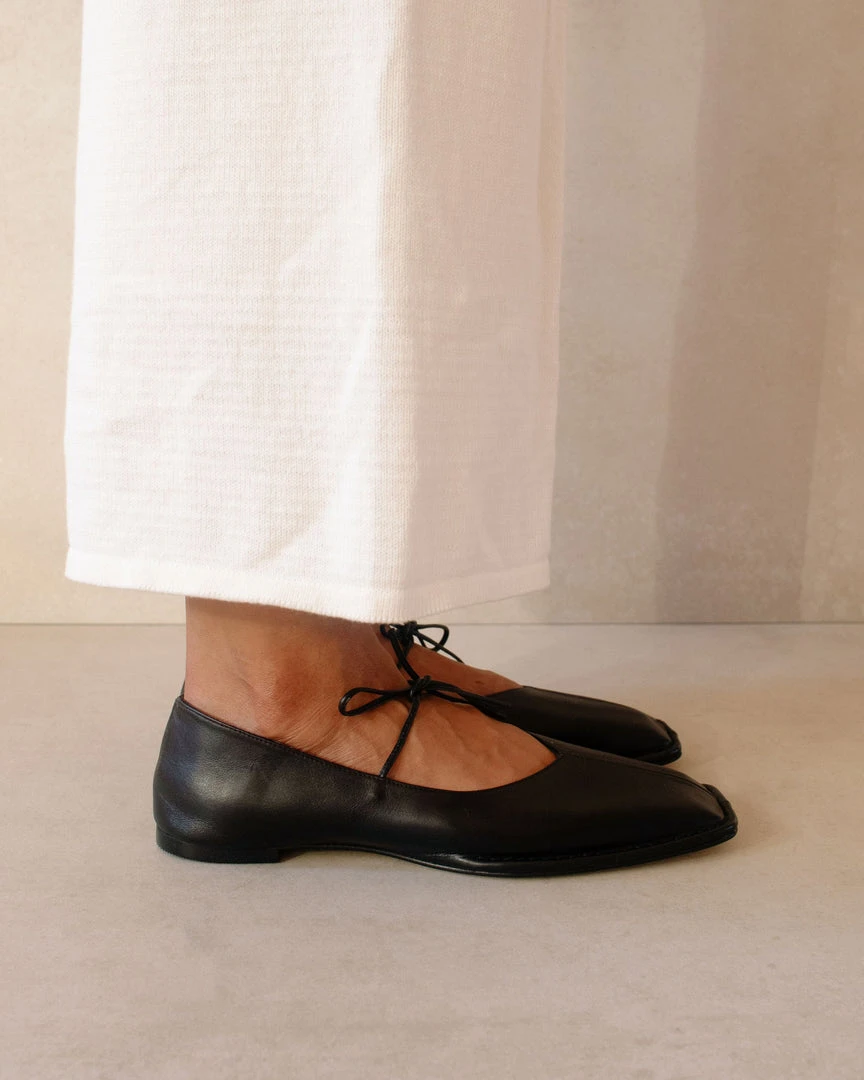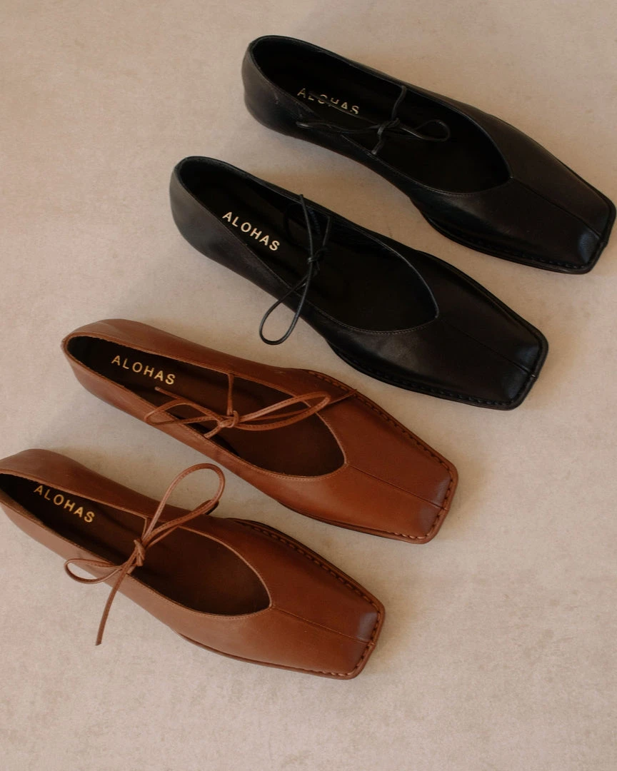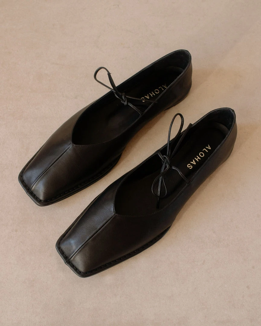 Ballet flats featuring a stylish square toe. Flexible sole designed to offer greater comfort and a front string-bow for a special touch of ladies who lunch.