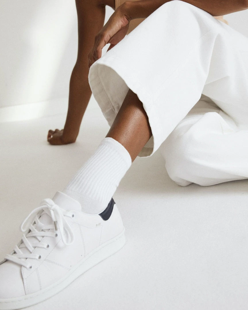 A classic white sneaker essential to any sustainable capsule wardrobe. Inspired by the original athleisure footwear trend of the 90s. The name of this product is tb (for throwback) followed by its year of inspirational conception. Perfect for year-round eco-friendly outfit combinations