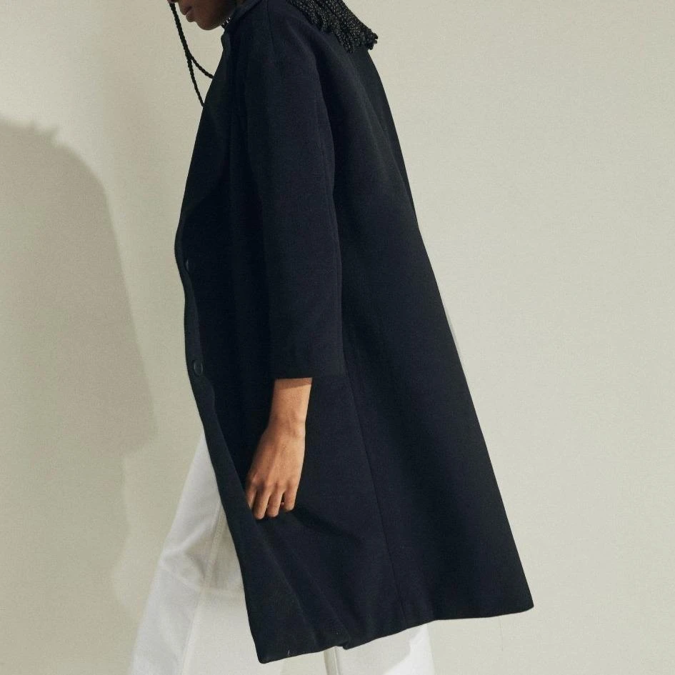 Women’s long black wool coat